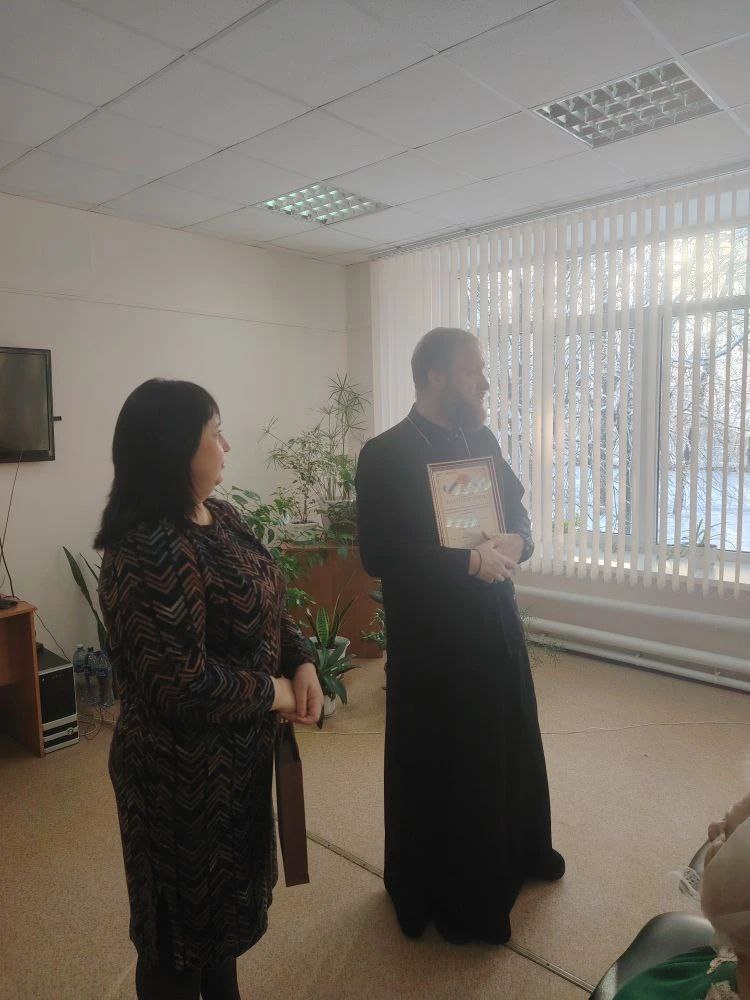 Предваряя встречу, Татьяна Гриднева поздравила иерея Павла Гребенкина с днём рождения. Она вручила ему благодарственное письмо, в котором выразила признательность и надежду на дальнейшее сотрудничество, сопроводив подарок искренними добрыми словами.