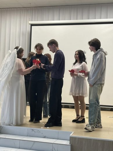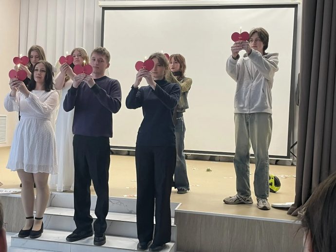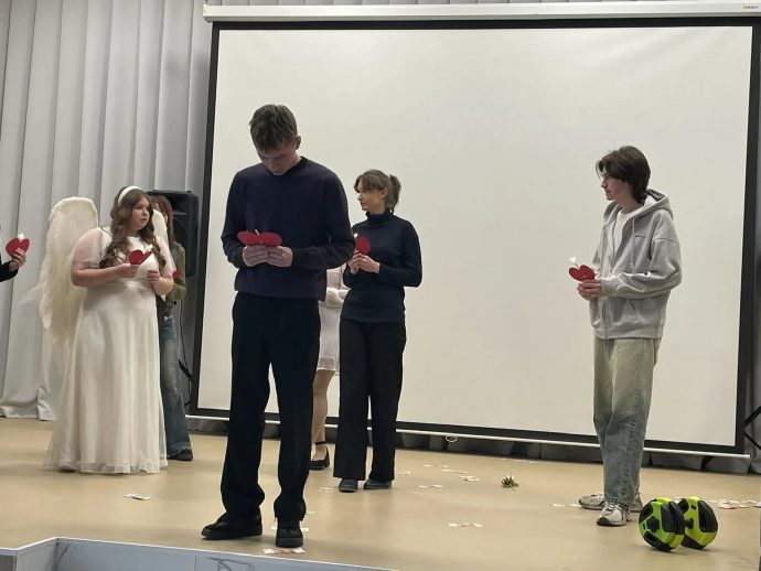По благословению благочинного Воловского округа протоиерея Алексия Резухина перед учащимися старших классов «ЦО п. Волово» выступили ребята из Молодежного добровольческого центра Тульской епархии стеатрализованной пантомимой «Сердца моего бездна».
