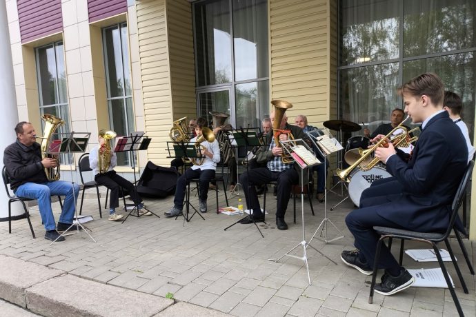 На площадке у Дома культуры звучал духовой орекстр – непременный участник разных событий военного и послевоенного времен.