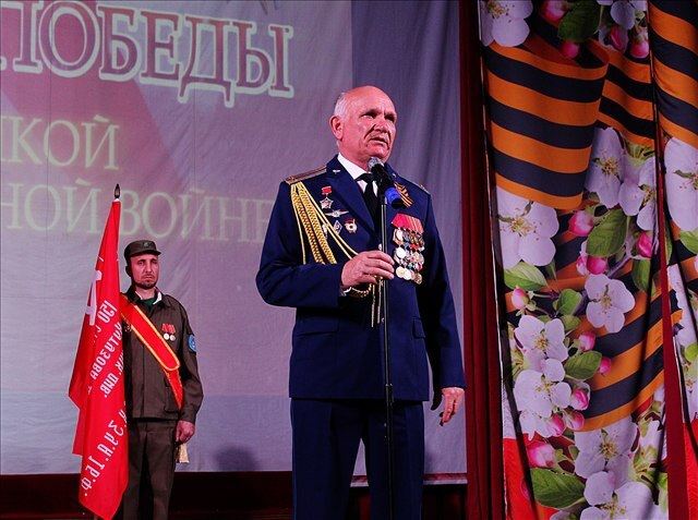 От имени ветеранов боевых действий с праздником всех поздравил руководитель организации «Пламя» Ринат Гильмияров, а с экрана прозвучали обращения ветеранов Великой Отечественной войны – Анны Петровны Рыжих и Сергея Владимировича Шуваева.