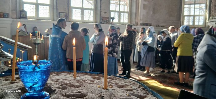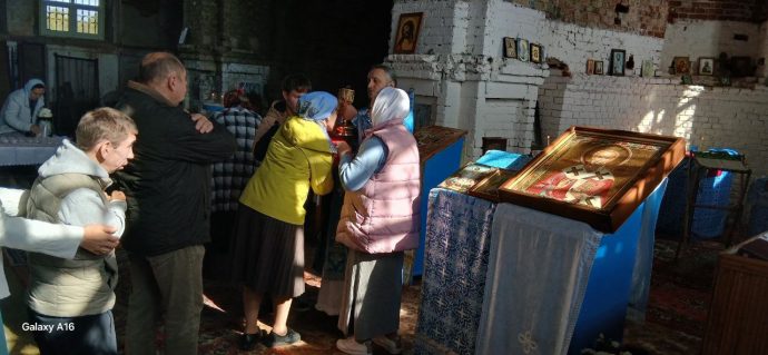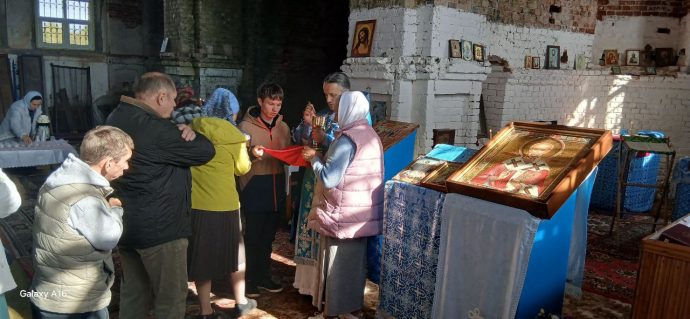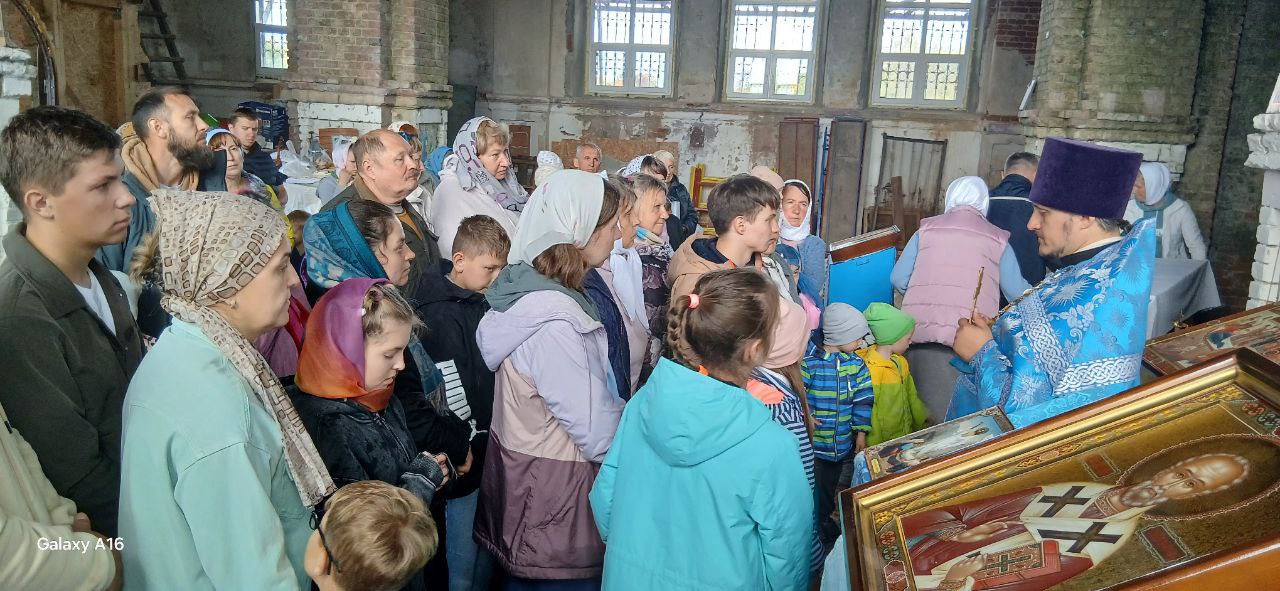 Настоятель храма иерей Павел Мананкин поздравил прихожан с праздником: «Дорогие братья и сестры, поблагодарим Бога, что дал нам силы, здоровье и возможность посетить сегодня храм Божий. Поздравляю вас с престольным праздником, целое столетие в нашем храме не было воскресного богослужения! Благодарю каждого, кто принимает участие в восстановлении храма, и желаю помощи Божией молитвами Пресвятой Владычицы нашей Богородицы!»