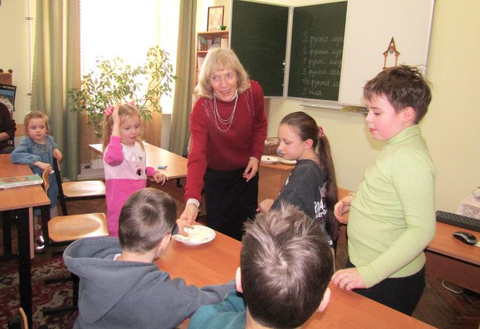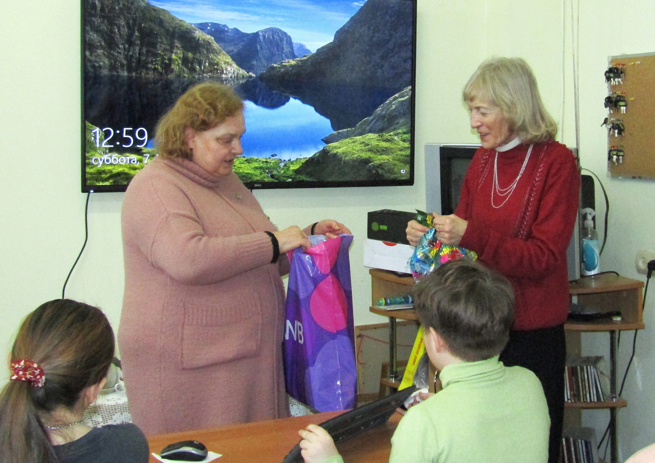 В финале занятия руководитель семейного клуба «Радуга» Людмила Александровна Ковтун передала Марине Александровне сладкие подарки от настоятеля Алексиевского храма протоиерея Олега Анохина.