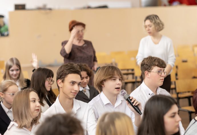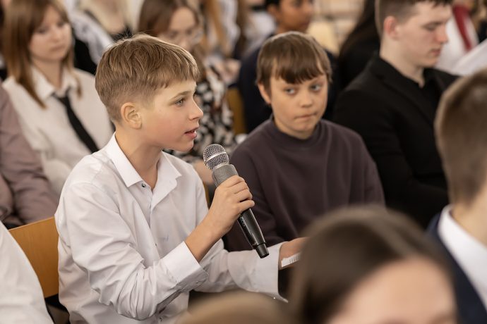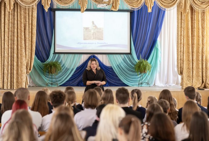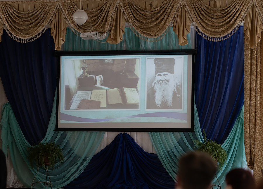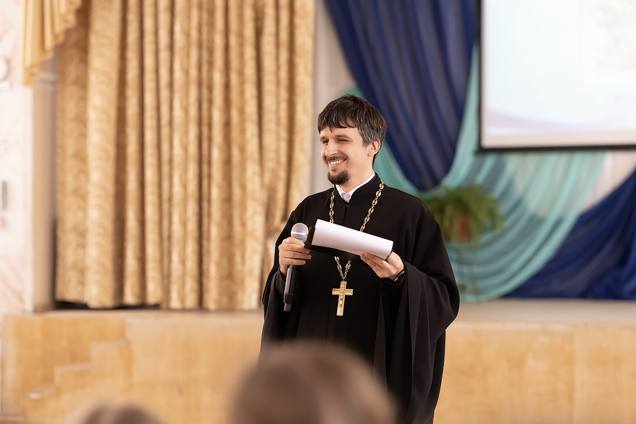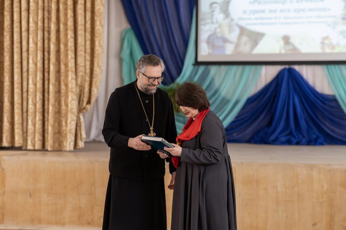 Отец Владимир обратился к школьникам: «Иосиф Виссарионович Сталин, будучи руководителем Советского государства, не смотря на занятость, имел правило – прочитывать в день по триста страниц. Я бы и вам посоветовал установить себе такой лимит». Батюшка упомянул о том, что у святого Амвросия Оптинского сборник басен Крылова был настольной книгой. Поэтому он преподнес в память об этой духовно-просветительской встрече Православную энциклопедию, где можно найти информацию об Оптинских старцах.