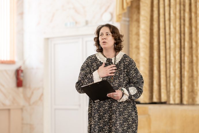 Поговорить о вечном организаторы пригласили гостей: благочинного по Новомосковскому округу протоиерея Владимира Лысикова, члена правления Регионального отделения Союза православных женщин Ирину Руденко, руководителя народного коллектива «Театр на Садовского» Олега Ефремова, артиста Молодежного театра города Узловая Юрия Корнеева, руководителя детской студии «Овация» Викторию Крылову, педагога школы №2 Наталью Жукову.