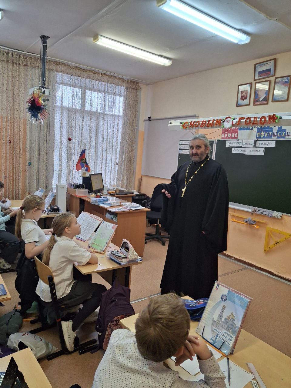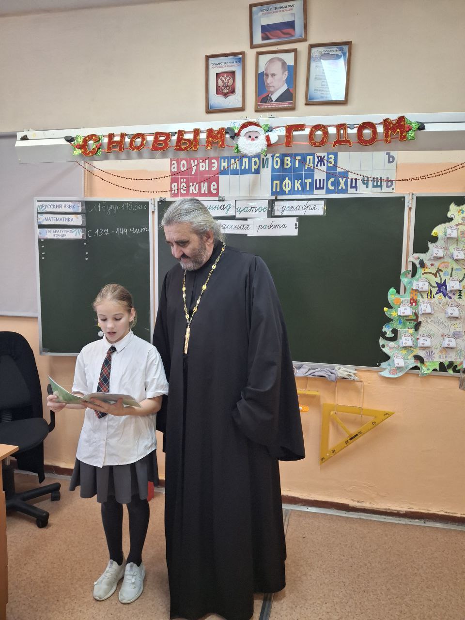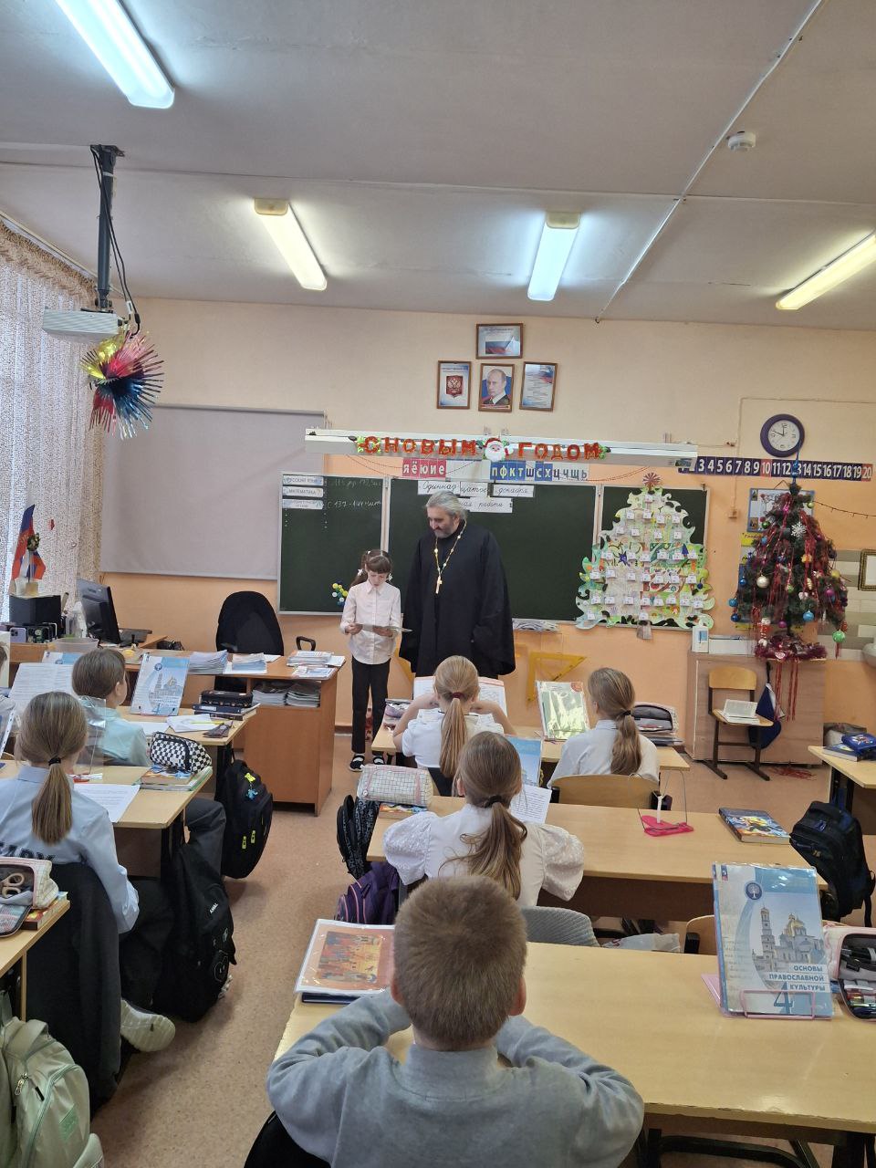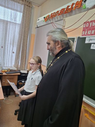 Для воспитанников 4б класса МКОУ «Средняя школа №9» был проведен необычный урок, посвященный празднику Введения во храм Пресвятой Богородицы.