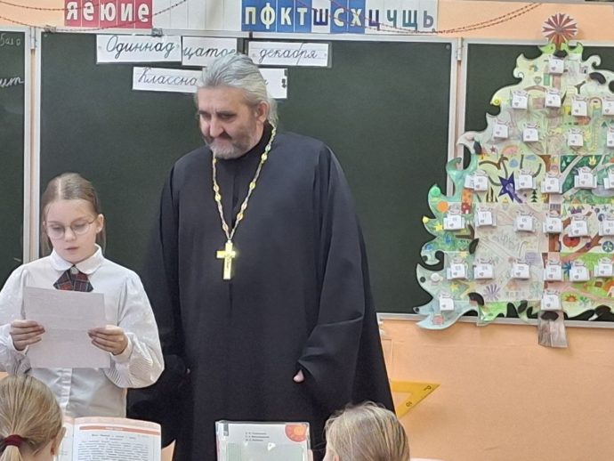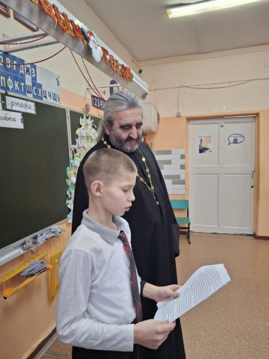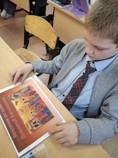 Отец Виталий на предыдущей встрече предложил учащимся подготовить материалы о празднике, его истории, сущности и значении для христиан.