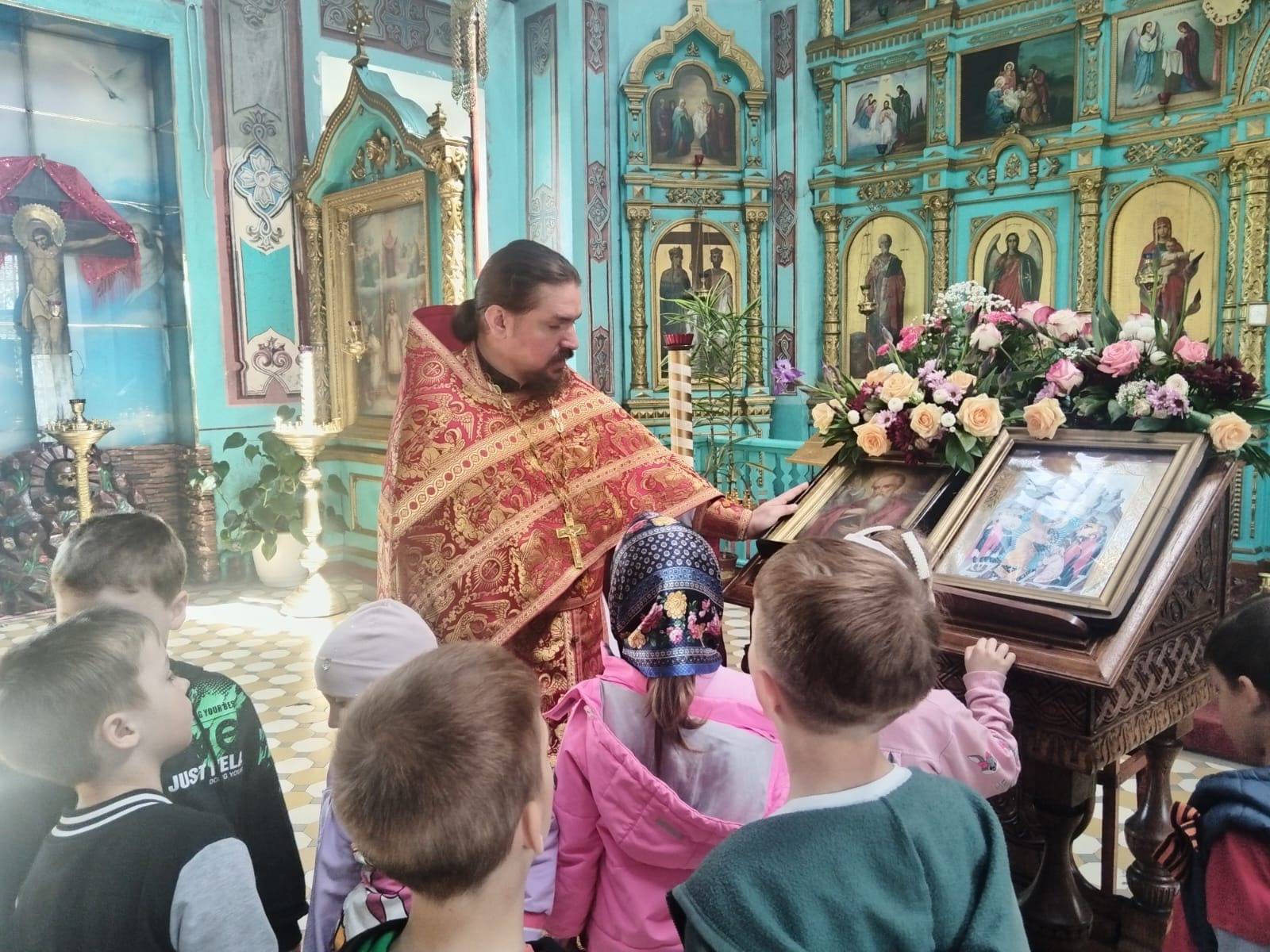 Также ребята узнали о святых, которым молятся о помощи в учении. В завершение экскурсии батюшка пригласил ребят на небольшое чаепитие, где они могли обсудить увиденное и услышанное, а также пообщаться друг с другом. После этого всех ждала прогулка на детской площадке у храма.