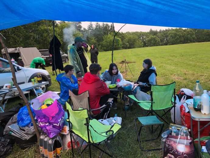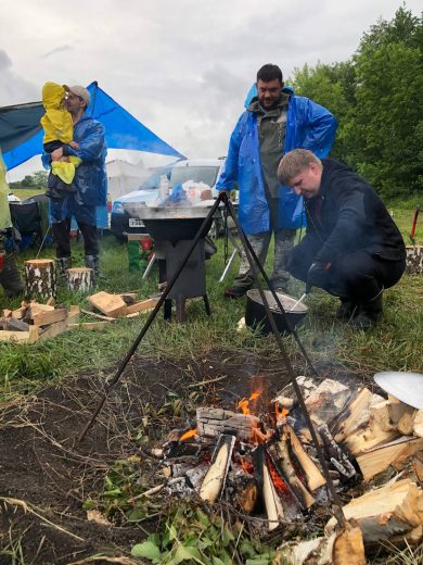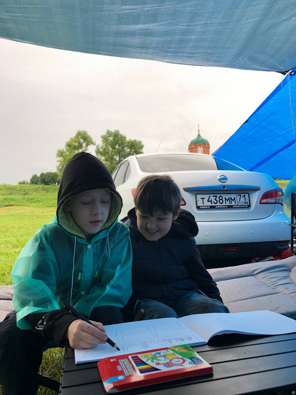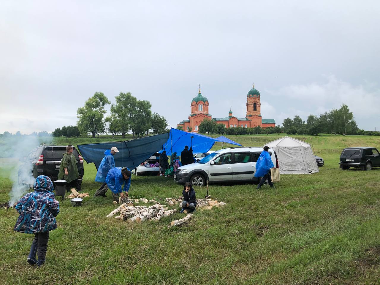 Летние каникулы в самом разгаре, но ребята из воскресной школы при храме «Нечаянная Радость» в Новомосковске продолжают встречаться с педагогами и проводить вместе свободное время. В этот раз дети и их родители собрались для того, чтобы отправиться в трехдневный туристический поход в село Монастырщино. В начале поездки клирик храма иерей Антоний Панченко отслужил молебен и помолился о путешествующих. Затем все отправились к берегу реки Непрядвы, недалеко от которой находится место, где произошла знаменитая Куликовская битва. Батюшка не раз отмечал, что воскресная школа – это одна большая семья. Поэтому и в совместный поход дети отправились вместе со своими родителями и близкими. К сожалению, в связи с погодными условиями не всем удалось остаться на ночевку. Но самые отважные разбили лагерь на берегу Непрядвы прямо под дождем.