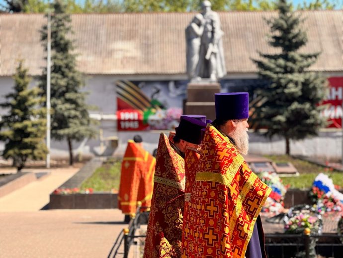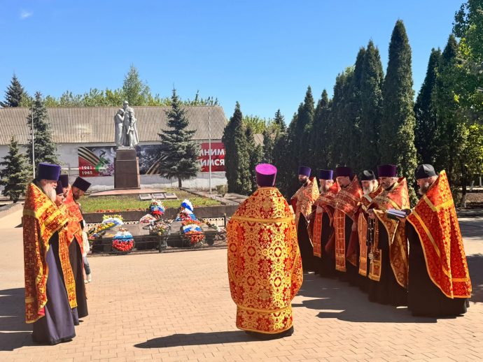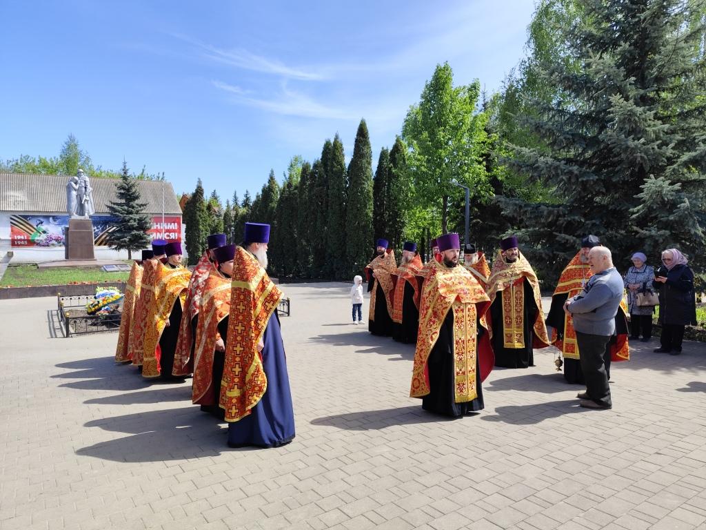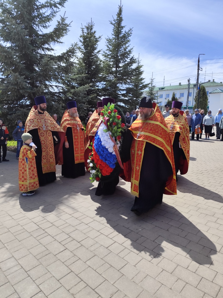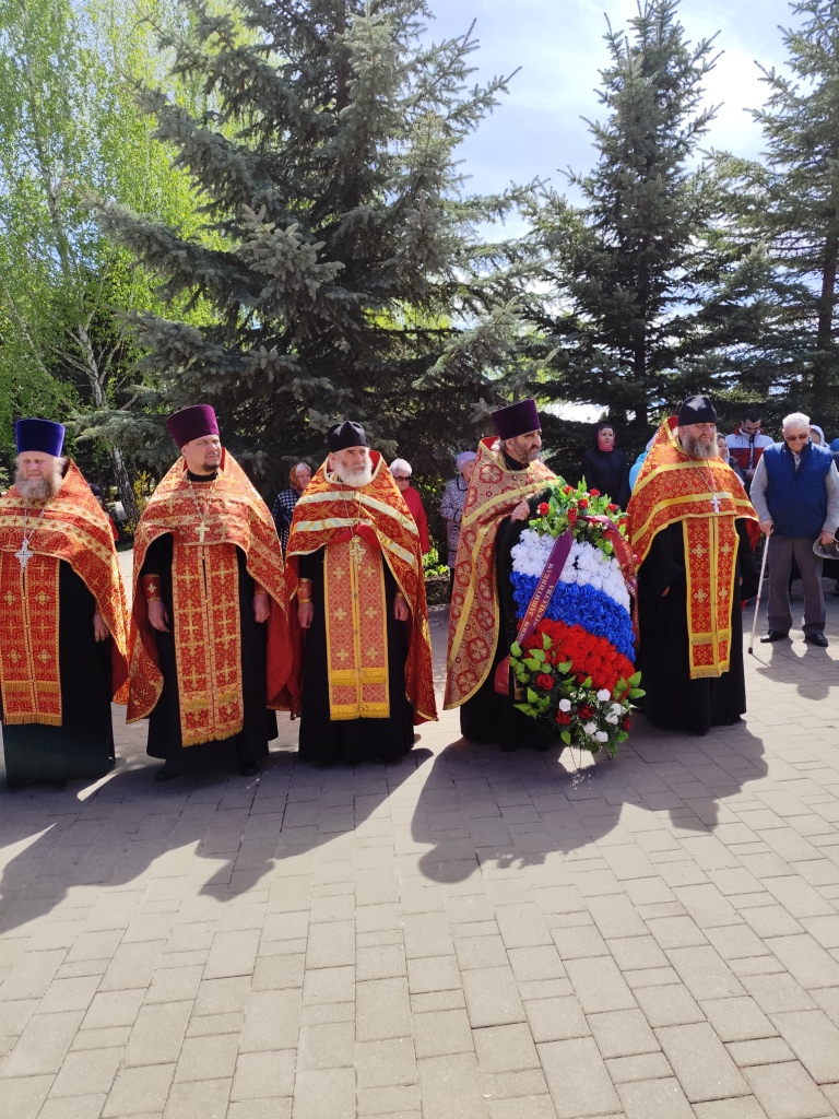 По окончании панихиды отец Вячеслав обратился кприсутствующим: «Дорогие братья и сестры, Христос Воскресе! Всех вас поздравляю с Днем Победы! Время все дальше отдаляет нас от героического подвига предков, но мы не должны их забывать, а всегда возгревать в себе огонь памяти о героических защитниках, которые даровали нам свободу и мирное небо».