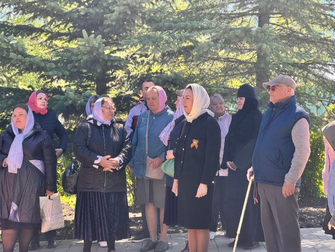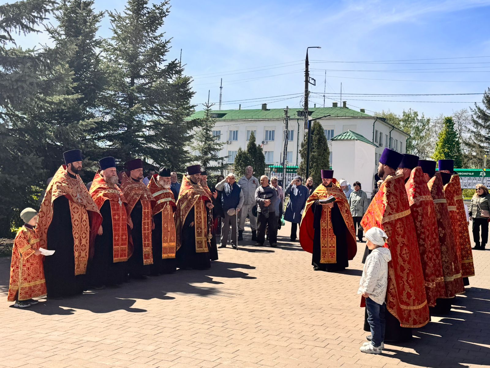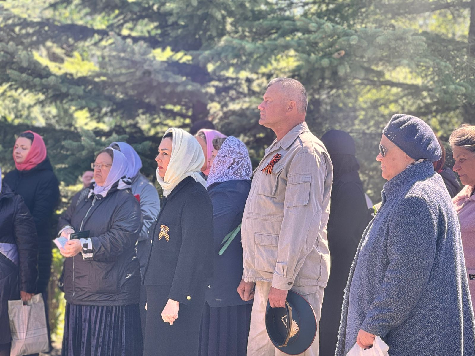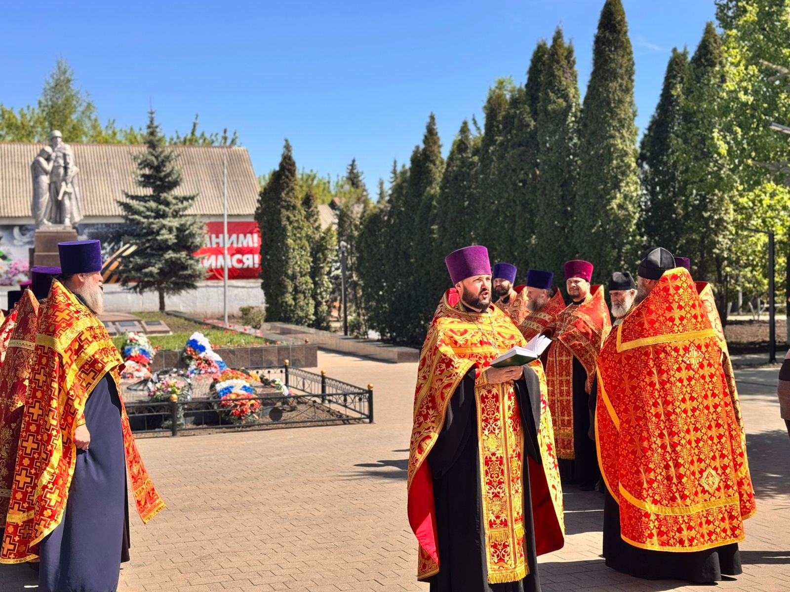 По окончании панихиды отец Вячеслав обратился кприсутствующим: «Дорогие братья и сестры, Христос Воскресе! Всех вас поздравляю с Днем Победы! Время все дальше отдаляет нас от героического подвига предков, но мы не должны их забывать, а всегда возгревать в себе огонь памяти о героических защитниках, которые даровали нам свободу и мирное небо».