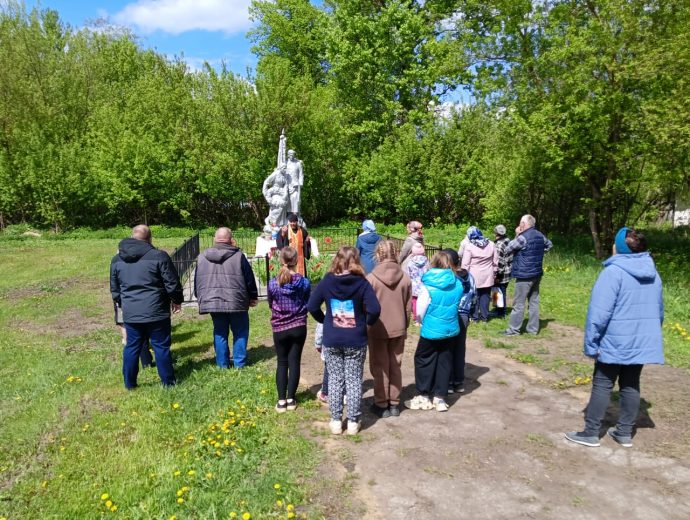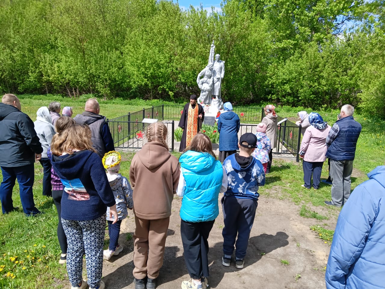 Почтить память героев, отдавших свои жизни за освобождение родной земли, собрались жители села. Не остались в стороне и дети, которые пришли помолиться вместе со взрослыми. Богослужение совершил иерей Сергий Лежнев, настоятель храма Казанской иконы Божией Матери села Дубики.