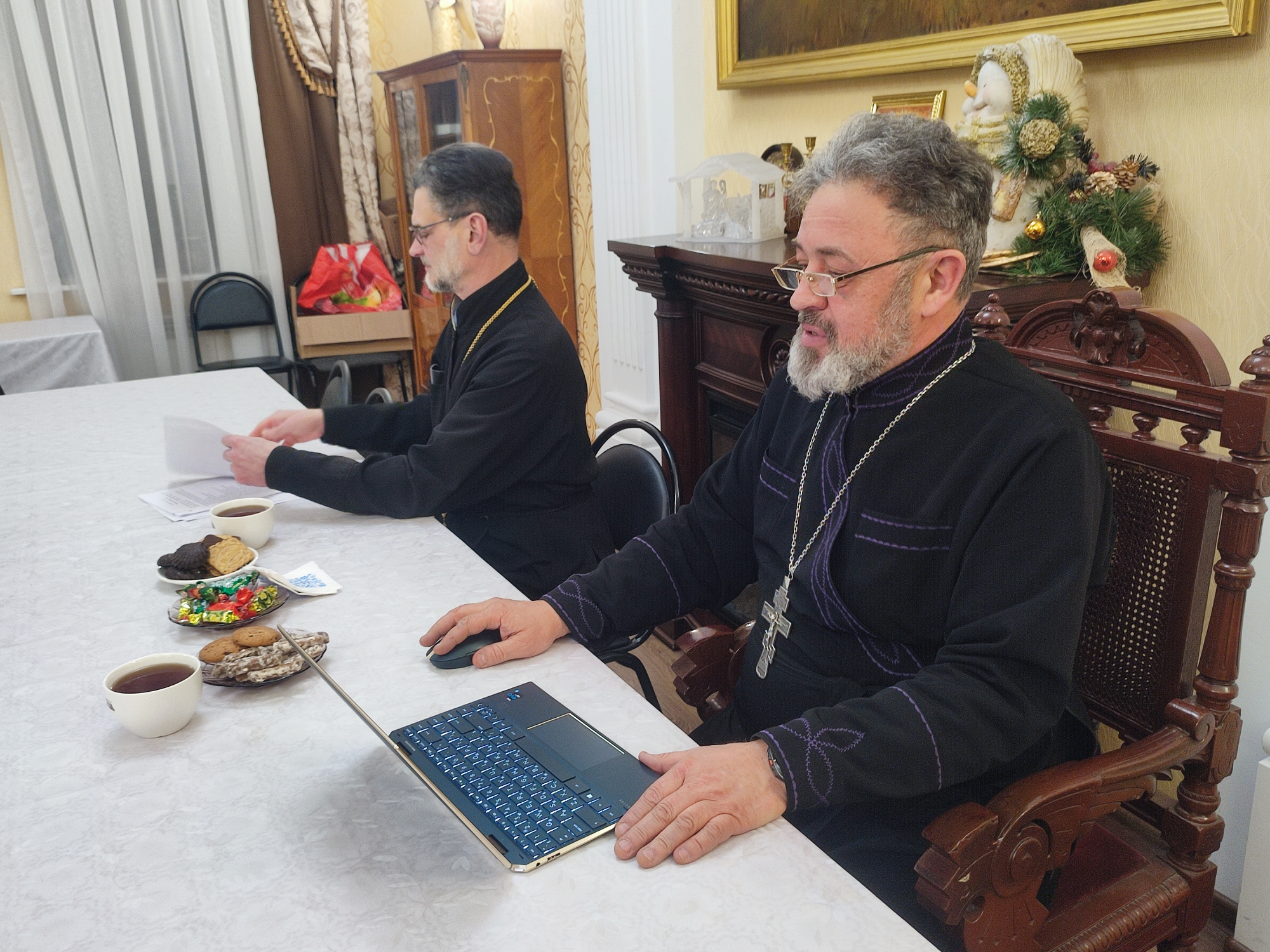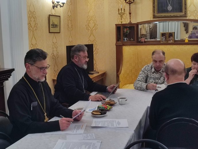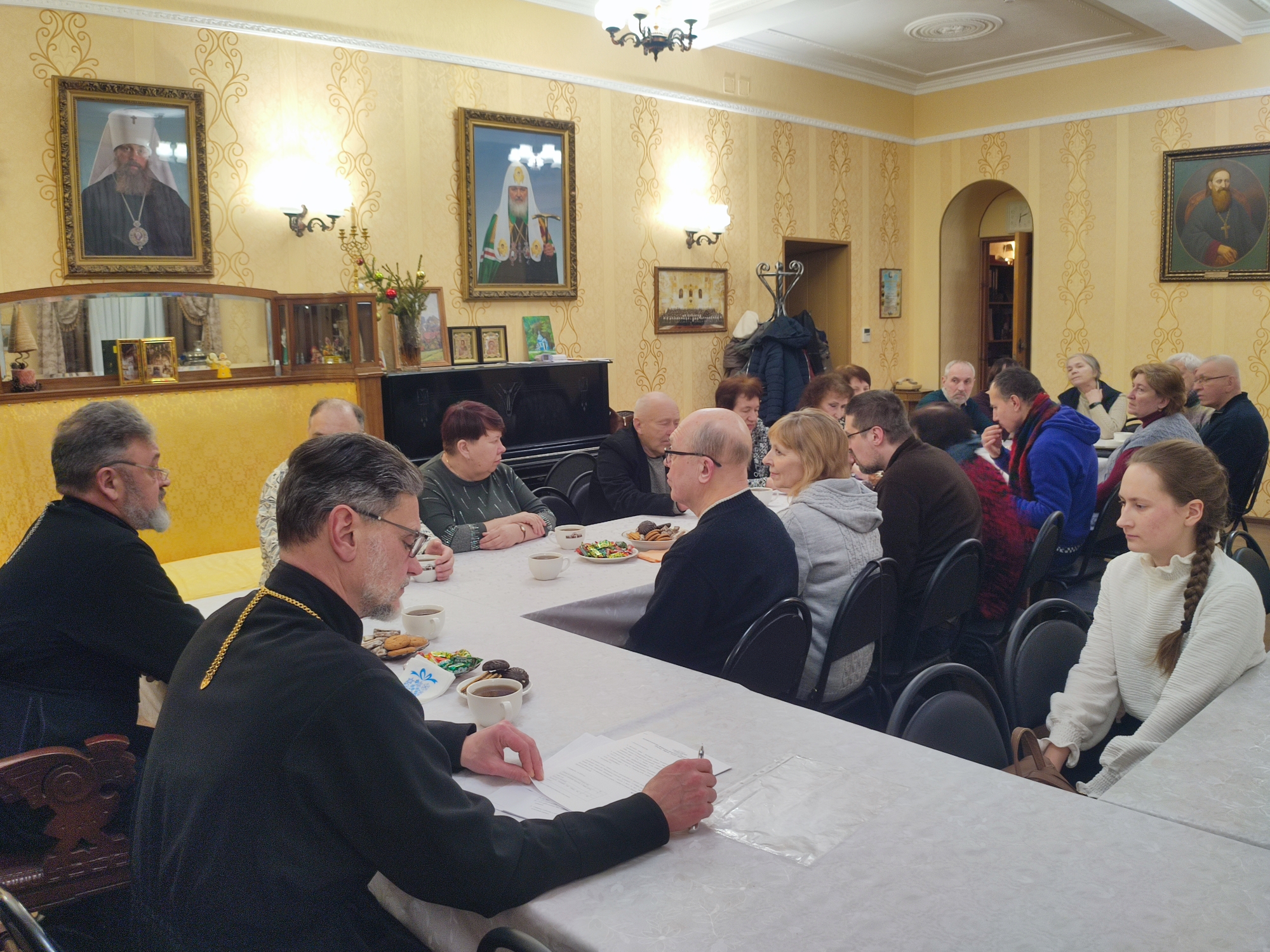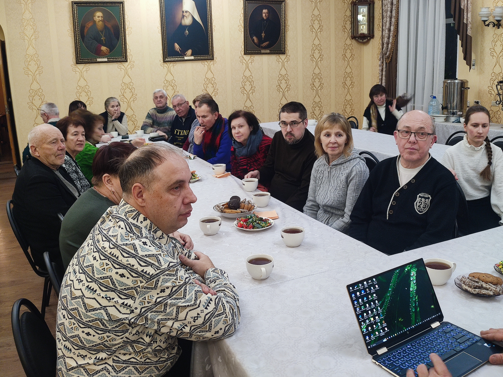 В каминном зале храма преподобного Сергия Радонежского состоялась духовная беседа в преддверии Собора новомучеников и исповедников Церкви Русской. Беседу провел иерей Сергий Тимошенко, настоятель храма во имя преподобного Александра Свирского села Хомяково.