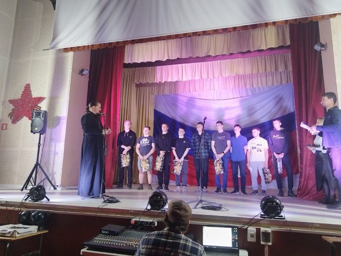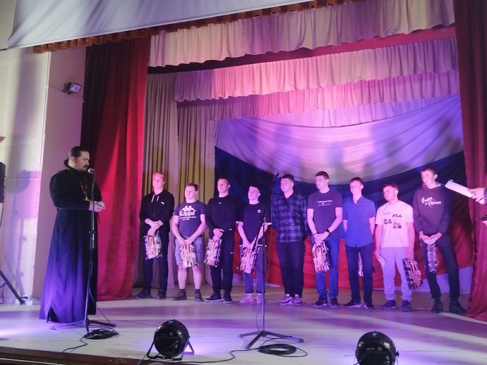 Настоятель храма апостола и евангелиста Иоанна Богослова иерей Алексий Дудин вручил призывникам молитвословы, нательные крестики и кисеты с землей с малой Родины, а также обратился к молодым людям. «Дорогие ребята, – приветствовал новобранцев священник, – сегодня для вас важный момент в жизни. Каждый из вас, вчерашний мальчишка, завтра станет солдатом, который должен уметь преодолевать трудности, и это преодоление будет характеризовать его как зрелого мужчину. Выполняя свой воинский долг, вы тем самым исполняете одну из важнейших Божиих заповедей о любви к ближнему. Будьте настоящими патриотами своей Отчизны. Помните, за вами стоит ваша малая Родина, дом, родные и близкие: за нихсолдат несет ответственность. Доброго здравия вам, крепости духовной и телесной».