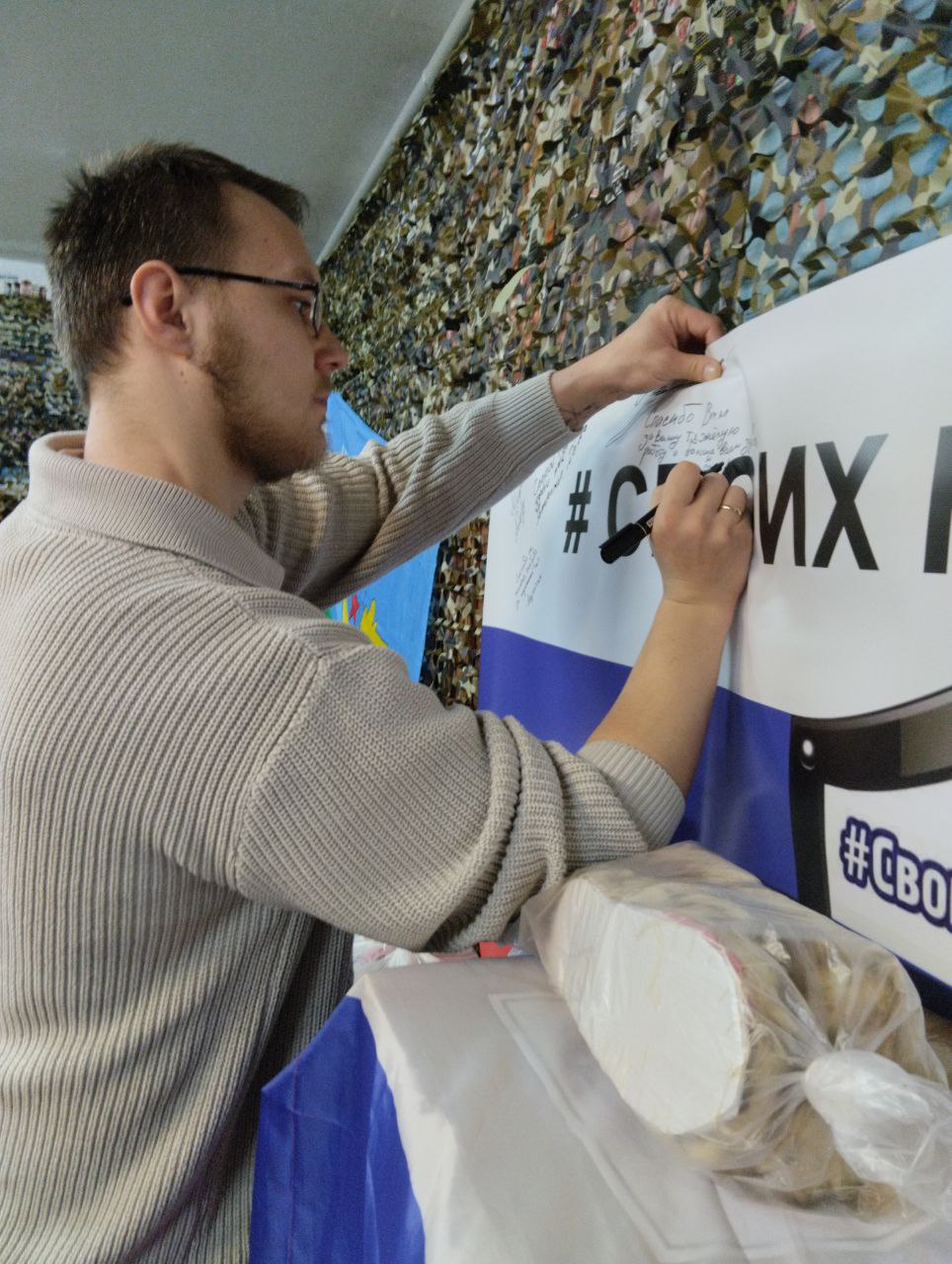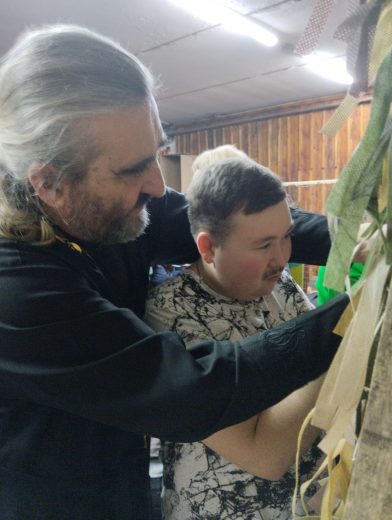 В первые февральские выходные в штабе организации «Своих не бросаем» в Ефремове собрались неравнодушные люди, чтобы оказать помощь в изготовлении маскировочных сетей, отправляемых в зону СВО. Участником встречи стал также настоятель храма святителя Луки Крымского поселка Восточный иерей Виталий Хлустиков.