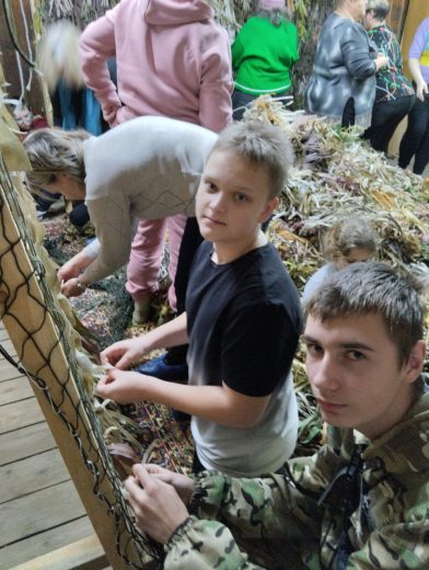 Пока дети отдыхали, их мамы с интересом слушали мастер-класс по изготовлению маскировочных сетей.