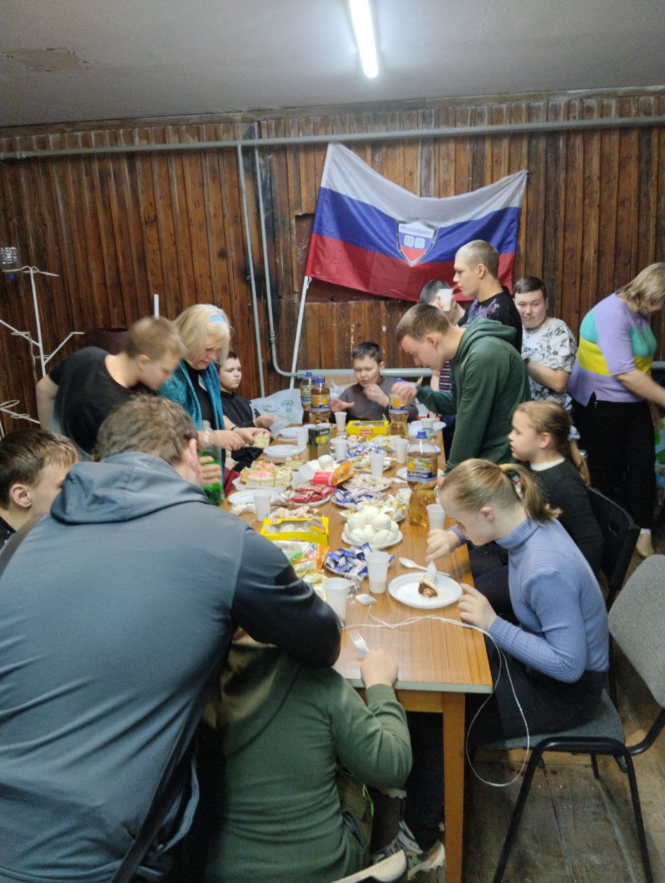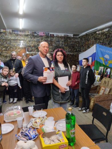 Администраторы организации «Своих не бросаем» вместе с директором МКУ ДО «ДЮСШ № 3», депутатом фракции «Единая Россия» Сергеем Кудиновым и его супругой Натальей Кудиновой, иереем Виталием Хлустиковым, главным редактором газеты «Заря. Ефремов» Анной Байрамовой, волонтерами организовали праздник для детей ДЮШ № 3 группы АФК и ребят из реабилитационного центра для несовершеннолетних «Юность».