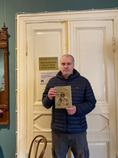 26 апреля, в Светлую седмицу Пасхи, Андрей Дёмин, прихожанин Никольского храма села Руднево, по приглашению руководителя проекта “Консервация” Евгения Соседова посетил Дом-музей Телешова в Москве, где располагается Московское областное отделение Всероссийского общества охраны памятников истории и культуры. После осмотра выставочных экспонатов Никольскому храму была передана отреставрированная икона святителя Николая Чудотворца.