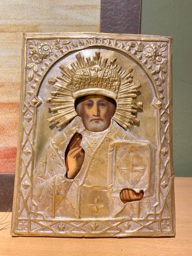 Образ был обнаружен в 2021 году во время проведения одного из субботников в Никольском храме. Состояние иконы было крайне плачевным. По инициативе Евгения Соседова и его коллег образ был взят для проведения реставрационных работ. После длительной и кропотливой работы икона святителя Николая приобрела обновленный вид.