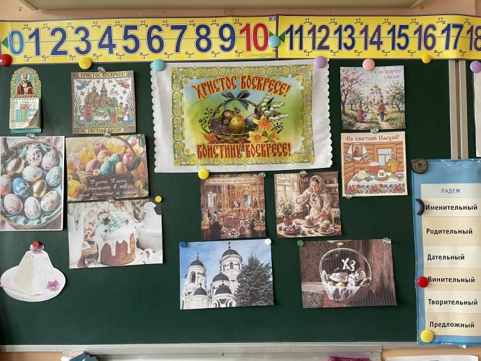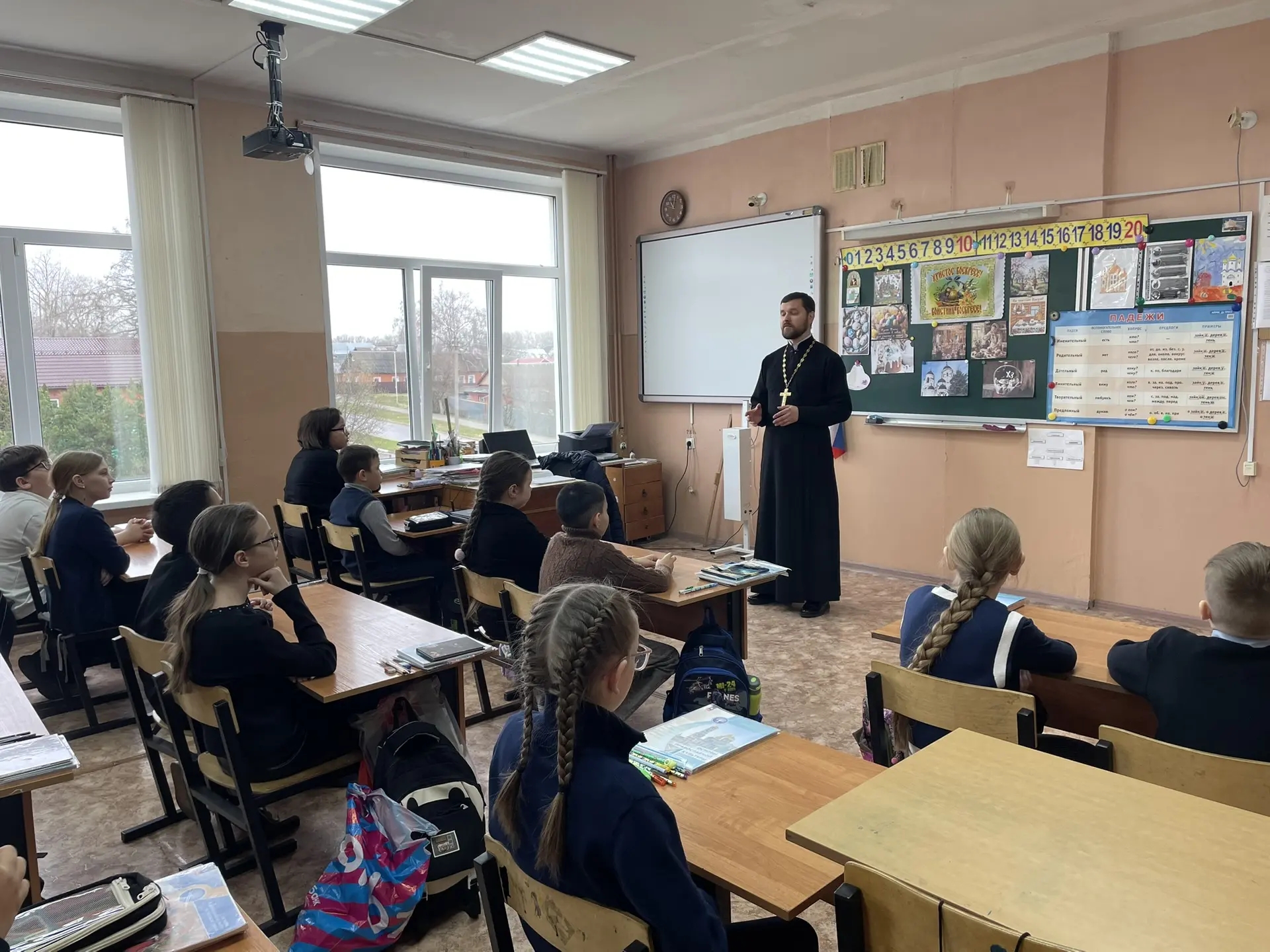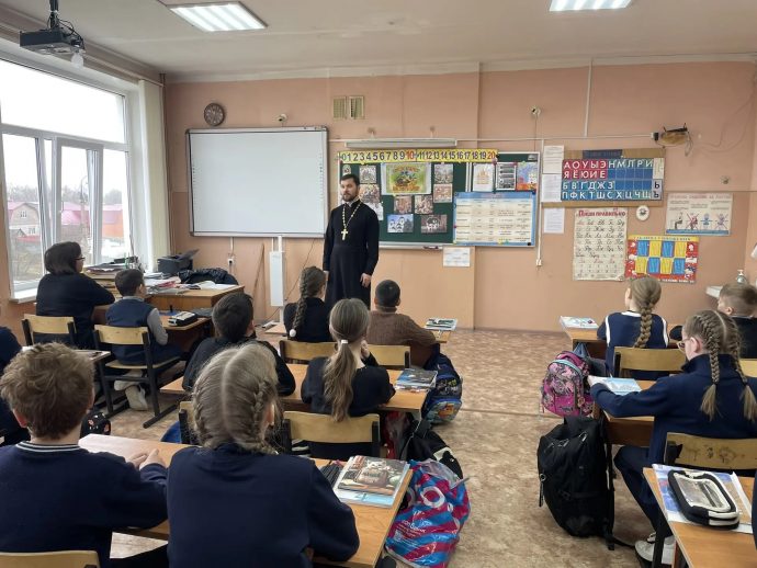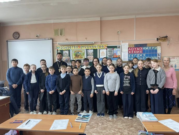 По приглашению администрации школы и преподавателя 4 класса Нины Михайловны Донской иерей Ярослав Сопига провел урок по основам православной культуры на тему «Светлое Христово Воскресение».