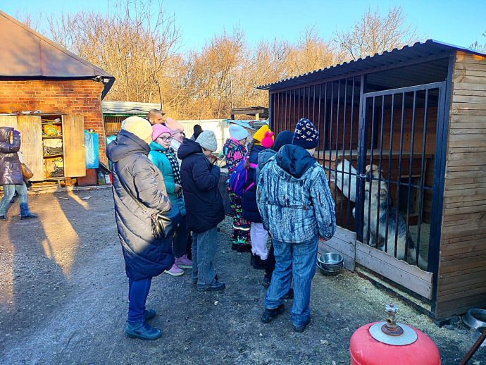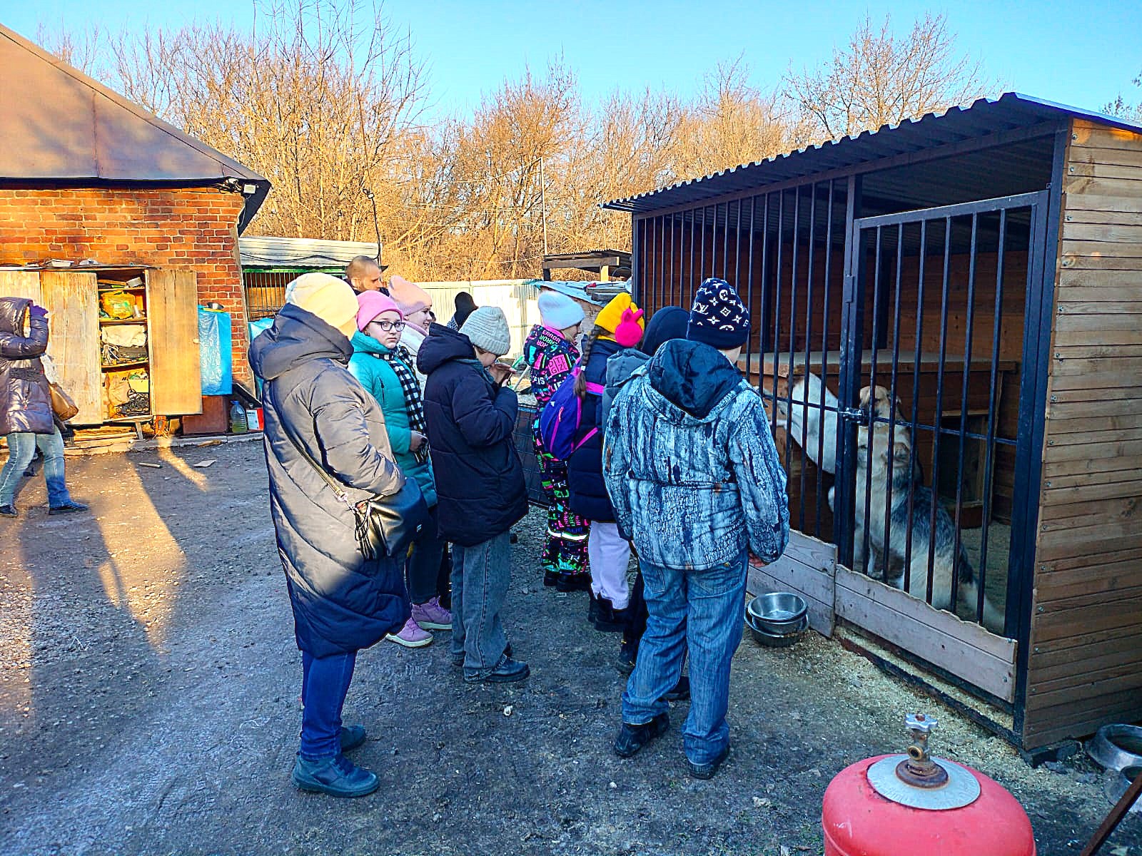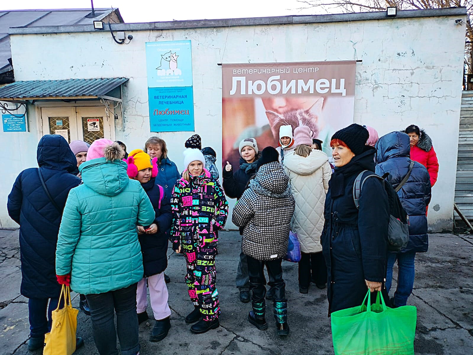 Ученики решили помочь приюту для животных, поэтому святочный период завершился поездкой в приют «Любимец», куда ребята привезли закупленный на собранные средства корм.