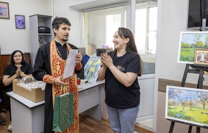 На Светлой седмице клирик храма «Нечаянная Радость» иерей Антоний Панченко посетил с пасхальными поздравлениями ребят из общественной организации.