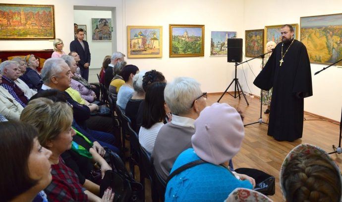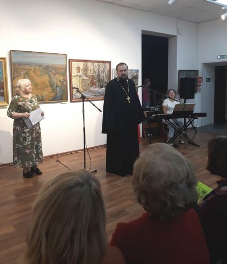 В своем приветственном слове иерей Николай сказал: «Сегодня знаменательное событие для нашего города – открытие замечательной выставки. Хотелось бы поблагодарить всех организаторов за возможность лицезреть жителям нашего города работы прекрасных художников».