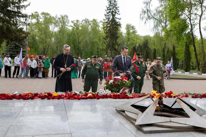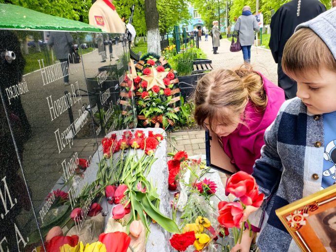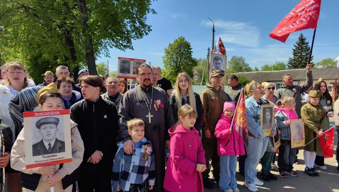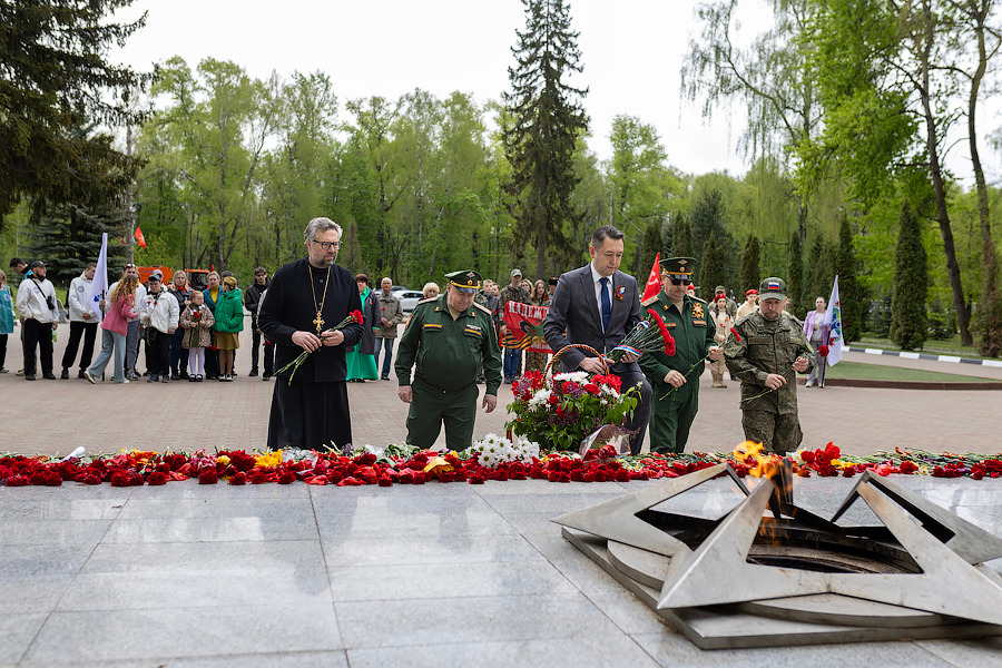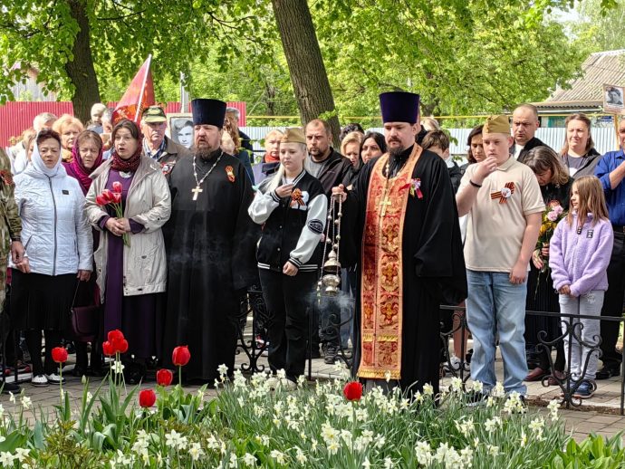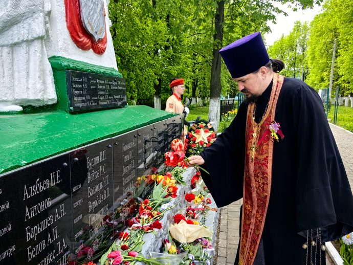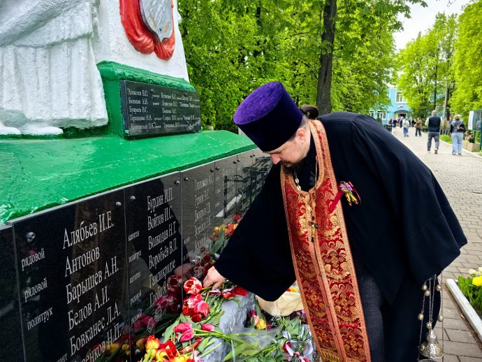 Настоятель храма апостола и евангелиста Иоанна Богослова иерей Алексий Дудин поздравил собравшихся с праздником: «Великая Отечественная война началась 22 июня — в день, когда Православная Церковь чтит всех святых земли Русской. Это неслучайно. Угодники Божии вымолили у Господа победу, они были рядом с нашими бойцами. И именно поэтому Победа пришлась на праздник Светлой Пасхи. Мы всегда будем помнить об этом, ведь Русь — земля, хранимая Богом. Наш долг — чтить память предков, отдавших жизнь за наше будущее».