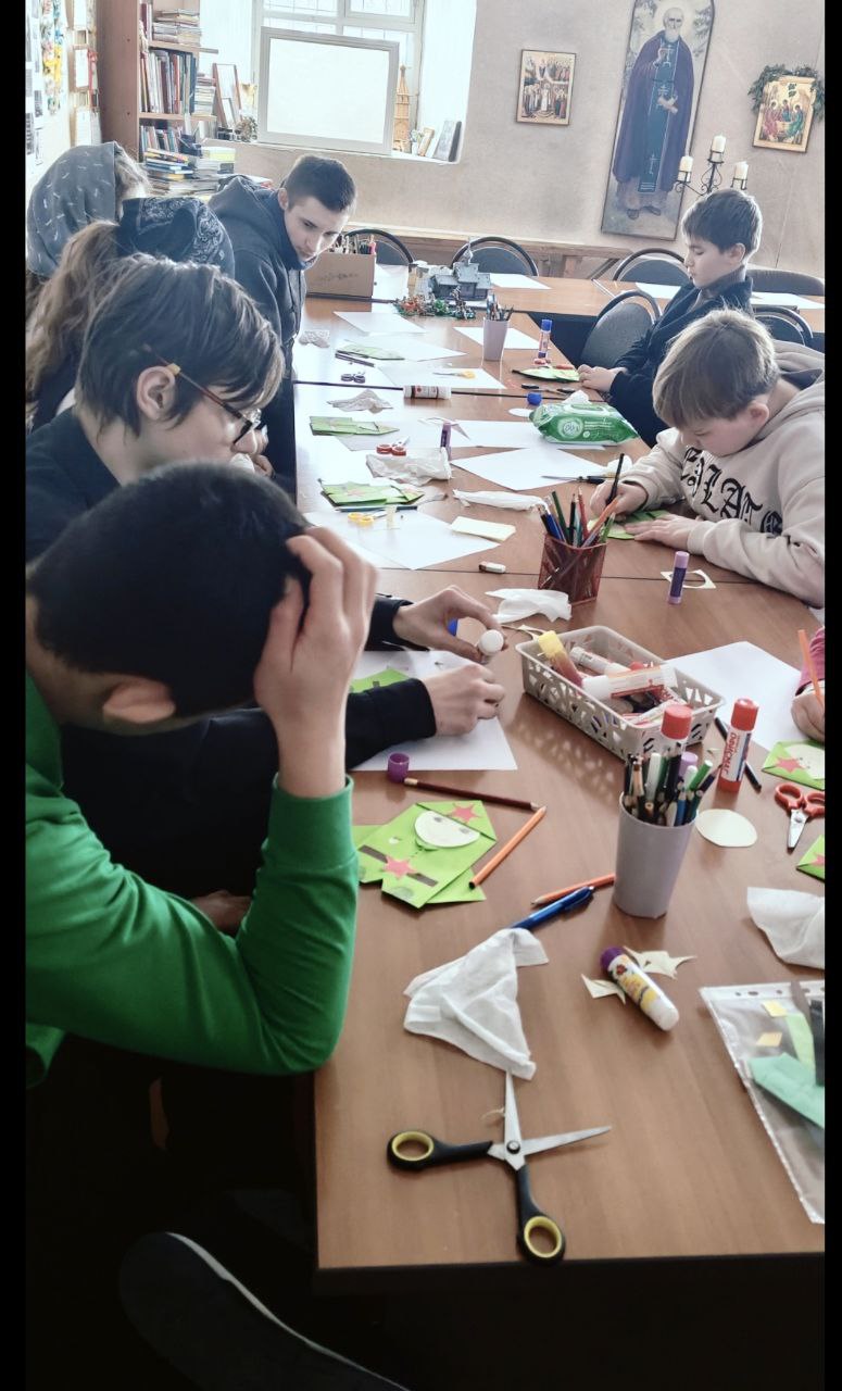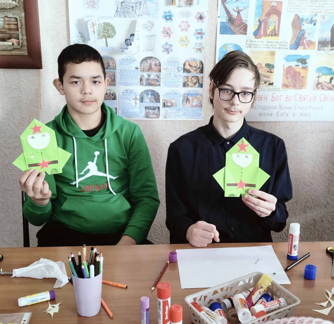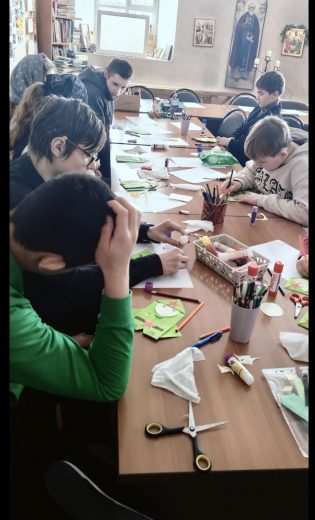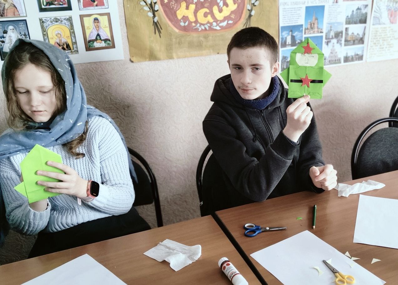 В преддверии Дня защитника Отечества на уроках в детской воскресной школе Свято-Успенского храма состоялся разговор о мужестве, доблести и о том, как важна поддержка для тех, кто сейчас далеко от дома выполняет свой воинский долг. Во время бесед воспитанники изготовили подарки военнослужащим. Каждый ученик сделал своими руками открытку-письмо в виде фигурки солдата.