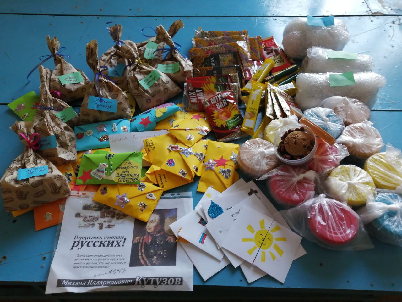 Перед праздником преподаватели школы организовали для бойцов сбор необходимых вещей, потому в самое ближайшее время военнослужащим отправят тёплые носки, шапки, средства личной гигиены, медикаменты и сладости.