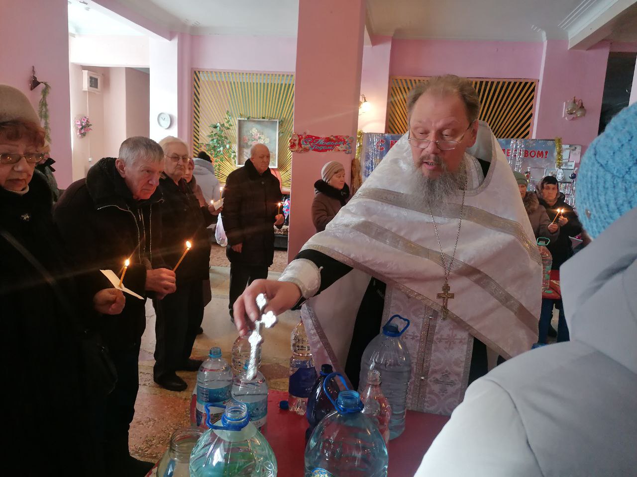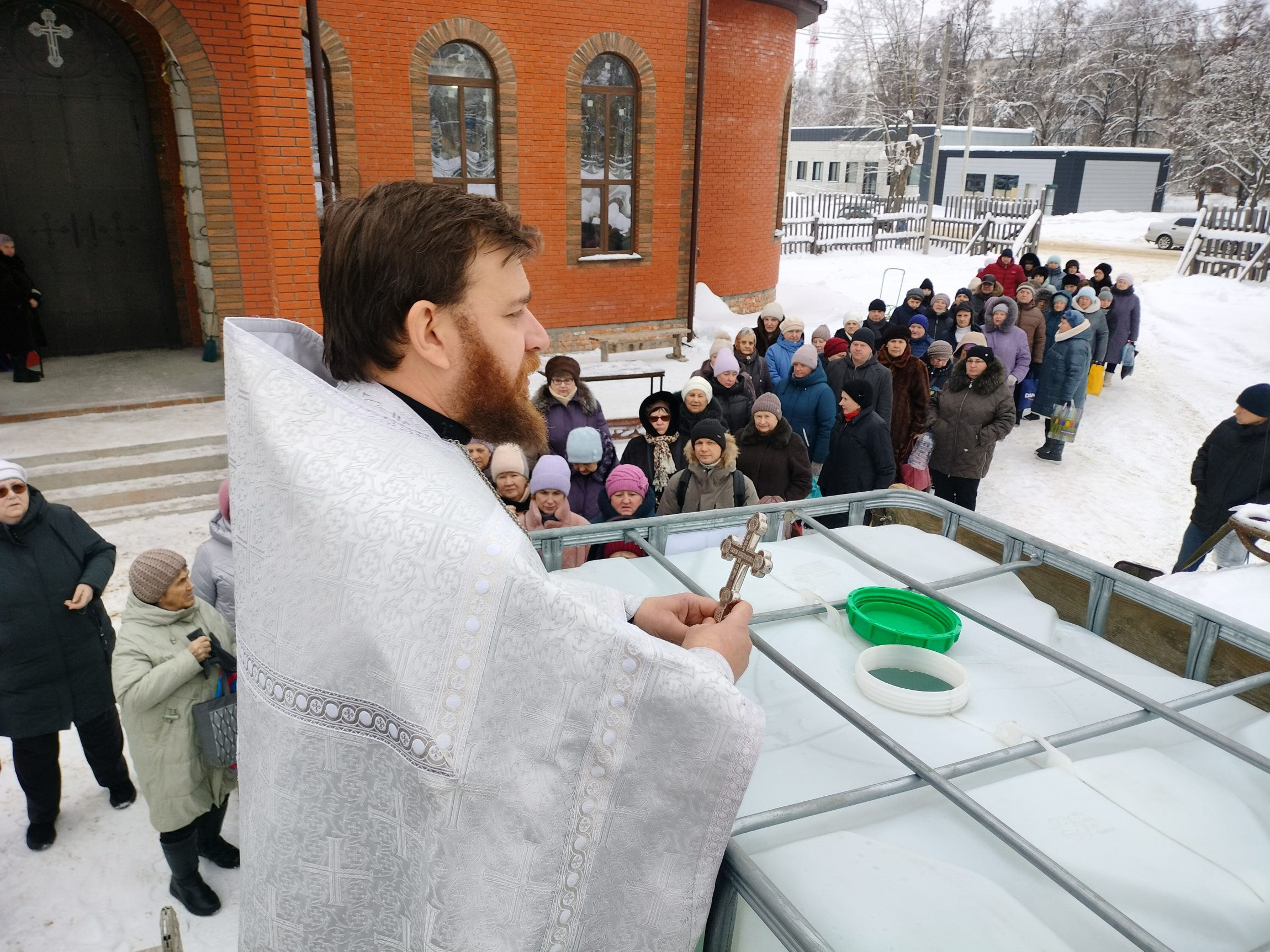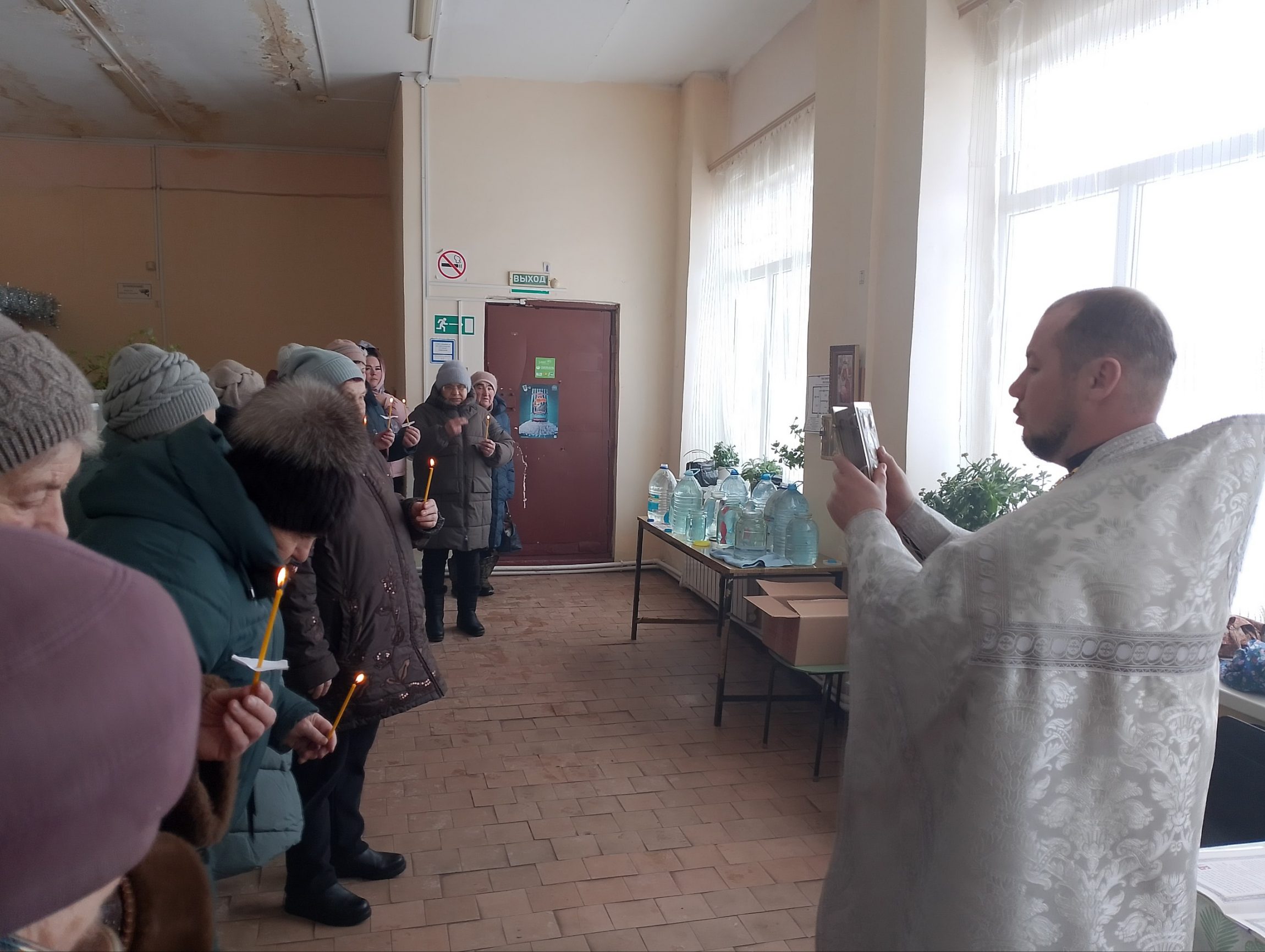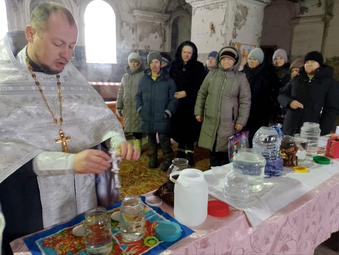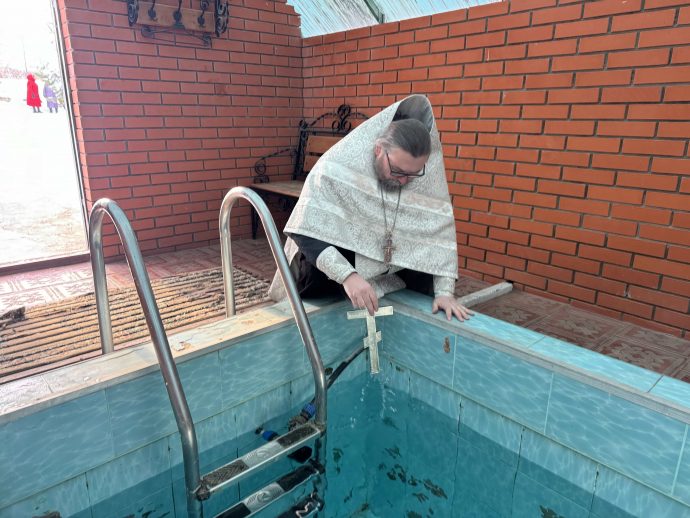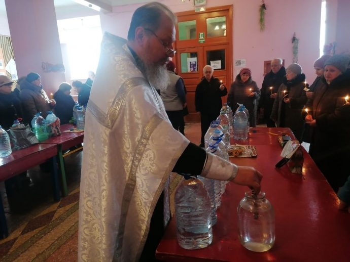Жители посёлка Брусянский также имели возможность набрать крещенской воды, не отправляясь за ней в город. В молебной комнате, которая находится в местном Доме культуры, богослужение совершил клирик Успенского храма иерей Сергий Кирдеев.