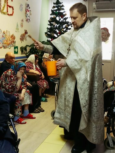 Слова тропаря праздника Крещения Господня услышали престарелые люди – жители интерната, когда отец Сергий пришел к ним с визитом. Поздравляя пожилых людей с великим двунадесятым праздником, протоиерей Сергий Гривас объяснил, что таинство Крещения очищает человека от греха, просвещает светом Христовым, открывая путь к Царству Небесному.