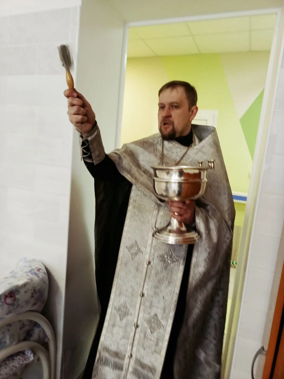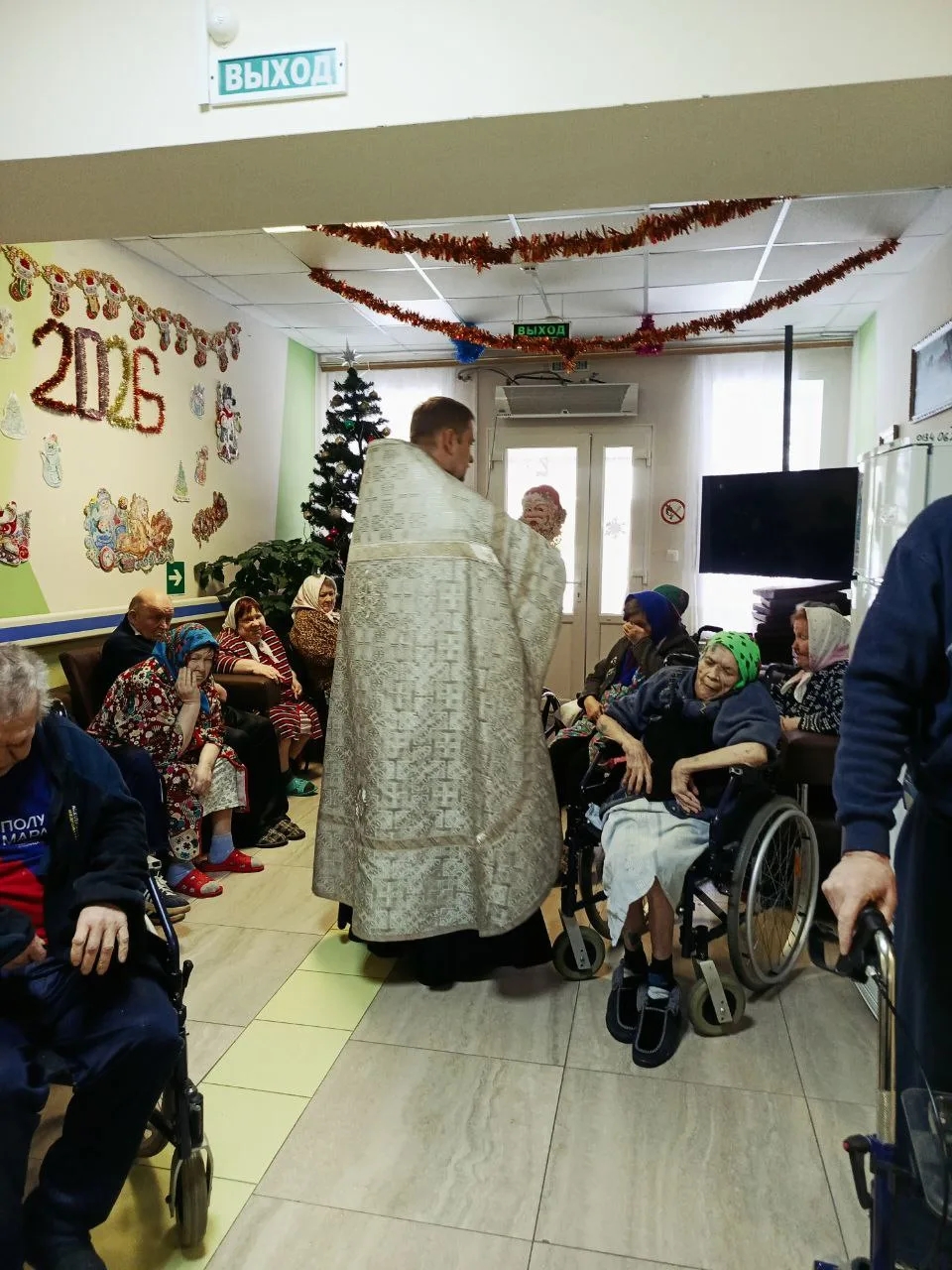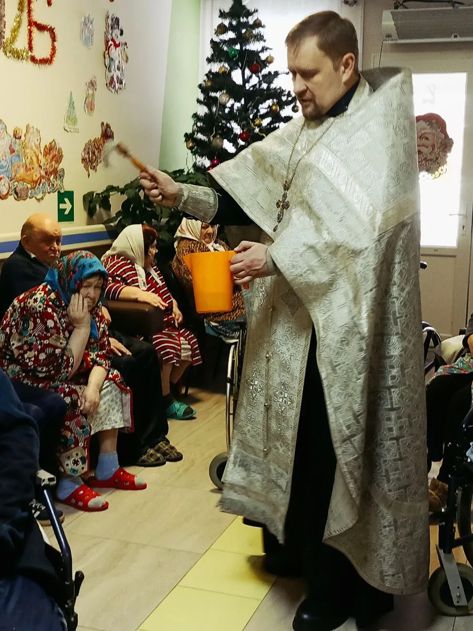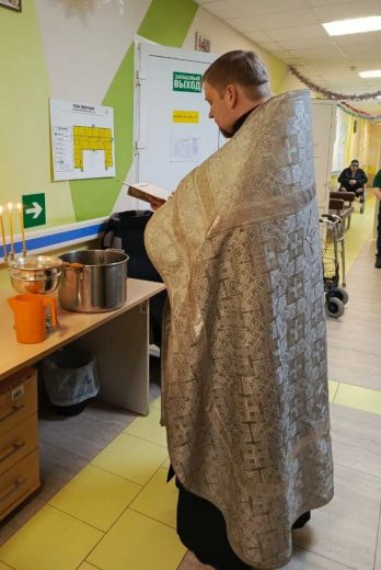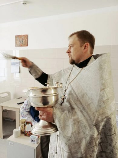Затем были окроплены крещенской водой все помещения, где находятся немощные больные люди, не имеющие возможности присутствовать на молебне.