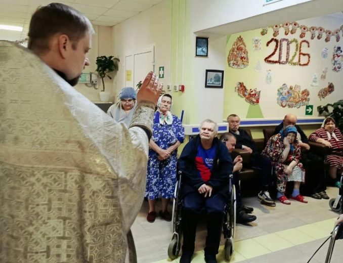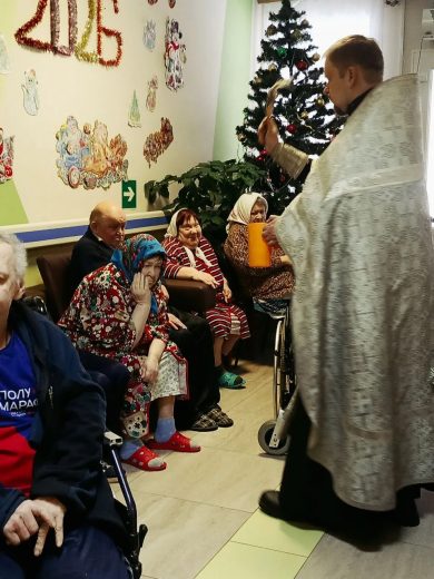 В великий праздник святого Богоявления – Крещения Господа Бога и Спаса нашего Иисуса Христа помощник благочинного по социальной и миссионерской работе Богородицкого округа протоиерей Сергий Гривас посетил ГУ ТО «Товарковский дом-интернат для престарелых и инвалидов» в поселке Бегичевский.