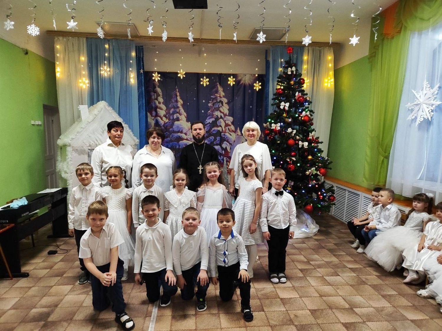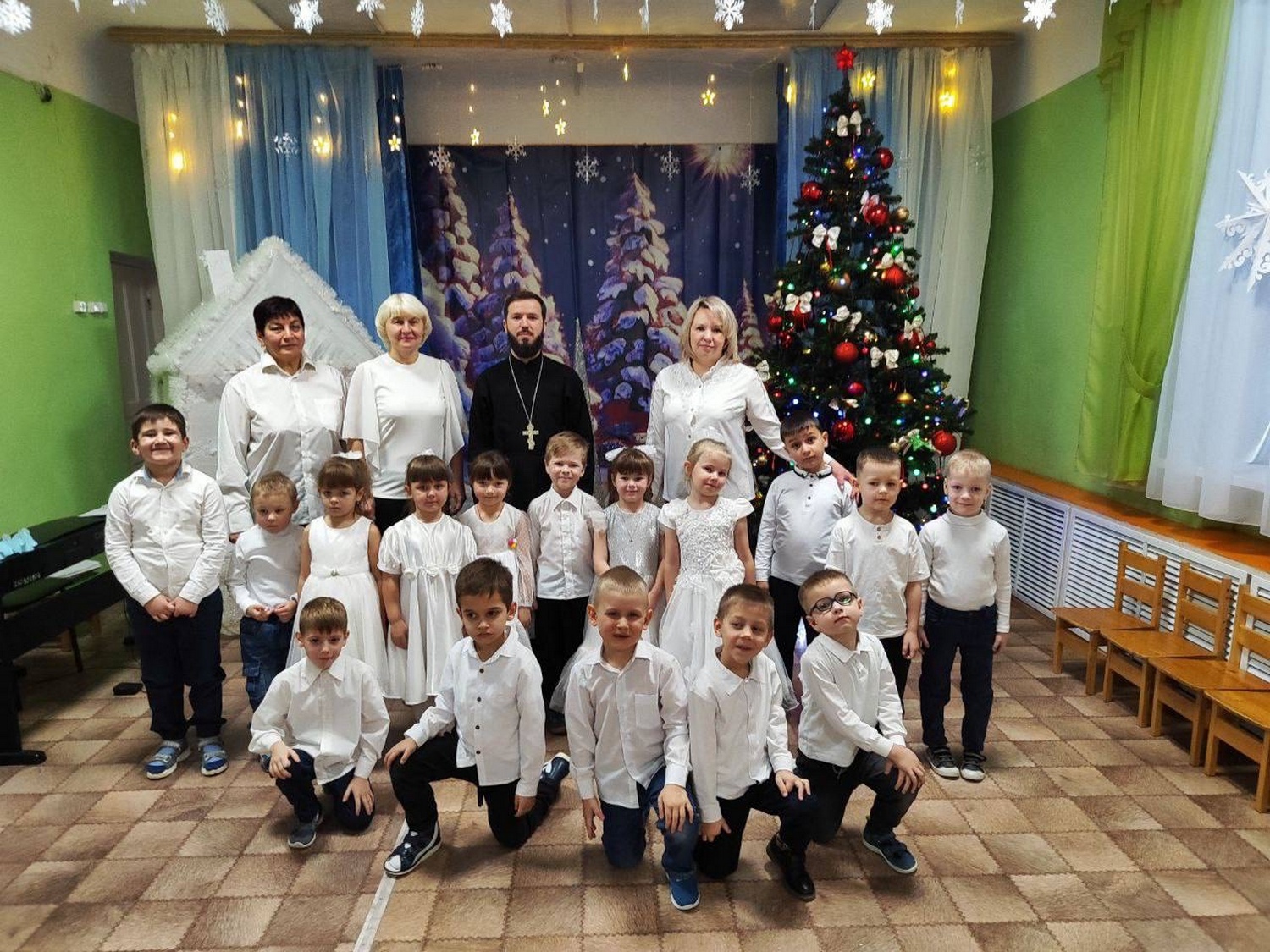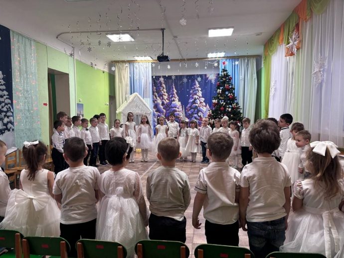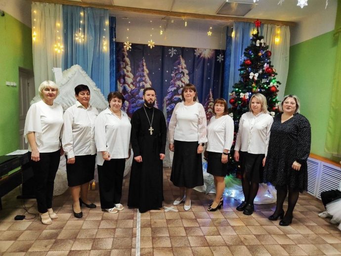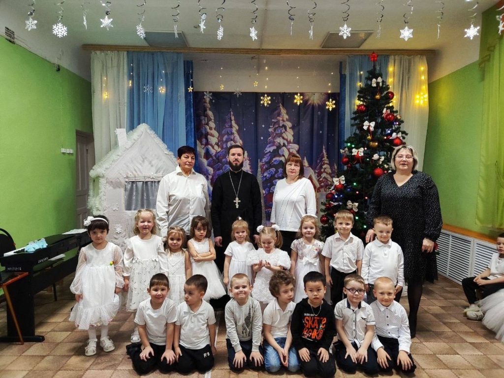 Отец Димитрий Козенко пришел к детям и их воспитателям по приглашению администрации детского сада. Воспитанники различных групп собрались в музыкальном зале. Под руководством своих воспитателей и музыкального руководителя дети показали композицию, посвящённую праздникам зимы.