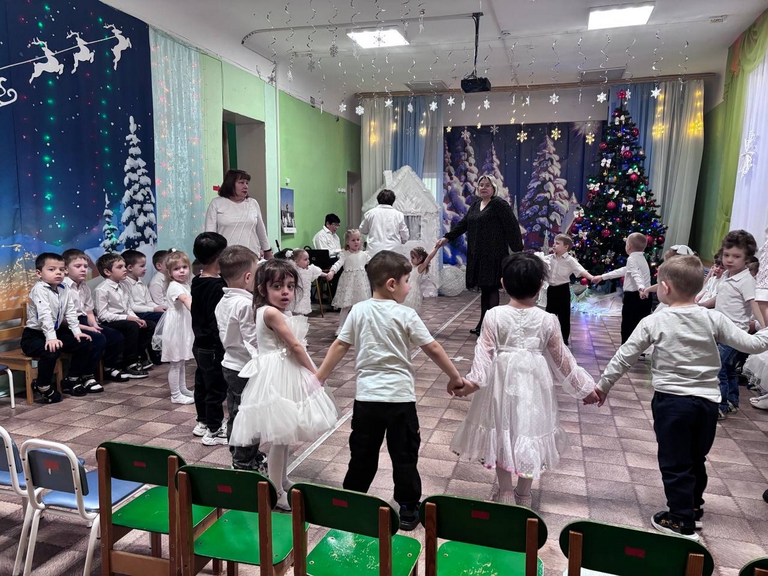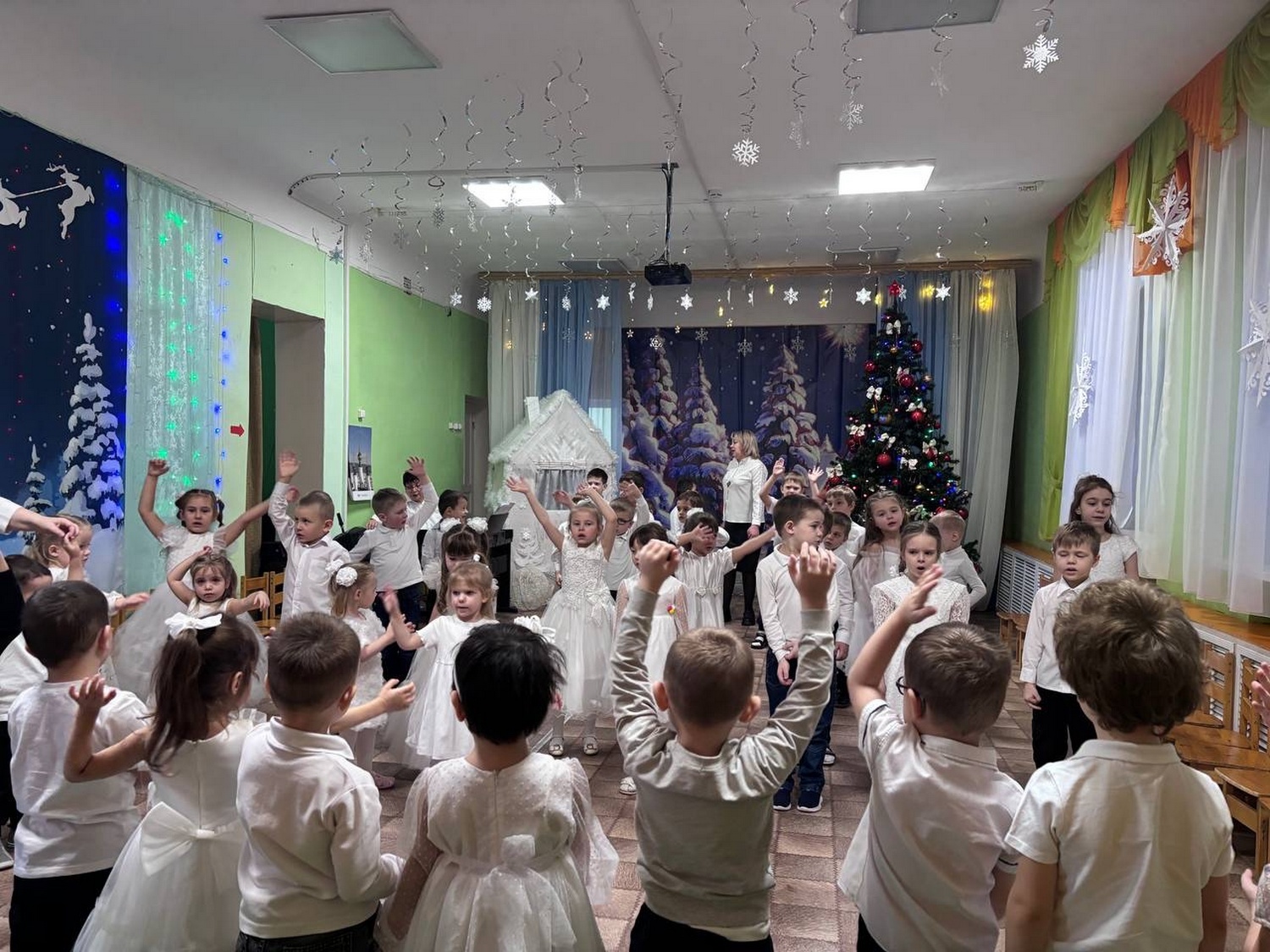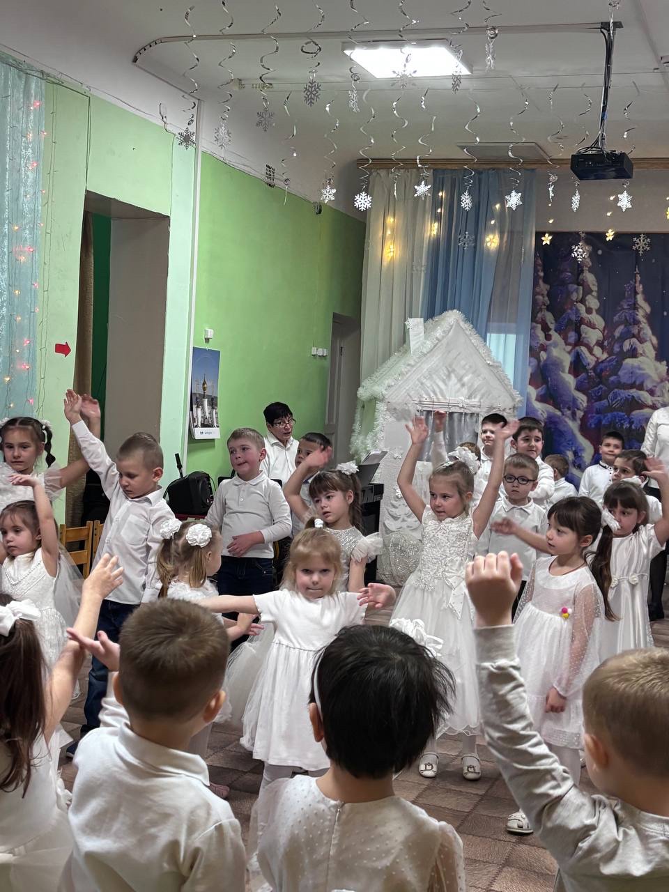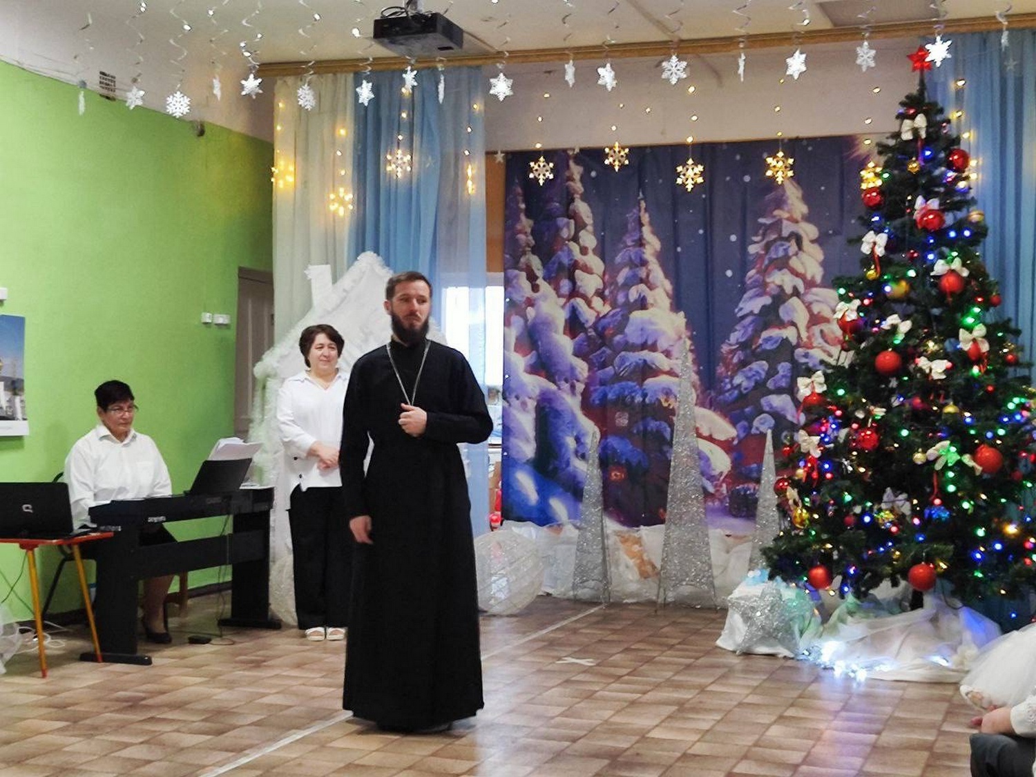 Отец Димитрий Козенко пришел к детям и их воспитателям по приглашению администрации детского сада. Воспитанники различных групп собрались в музыкальном зале. Под руководством своих воспитателей и музыкального руководителя дети показали композицию, посвящённую праздникам зимы.