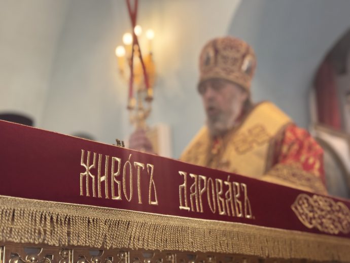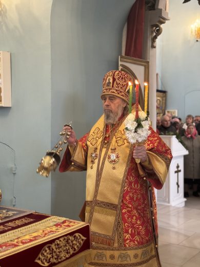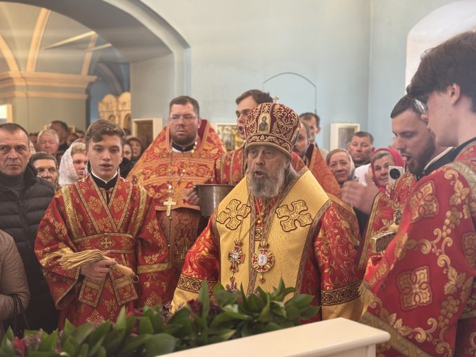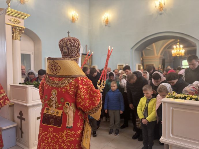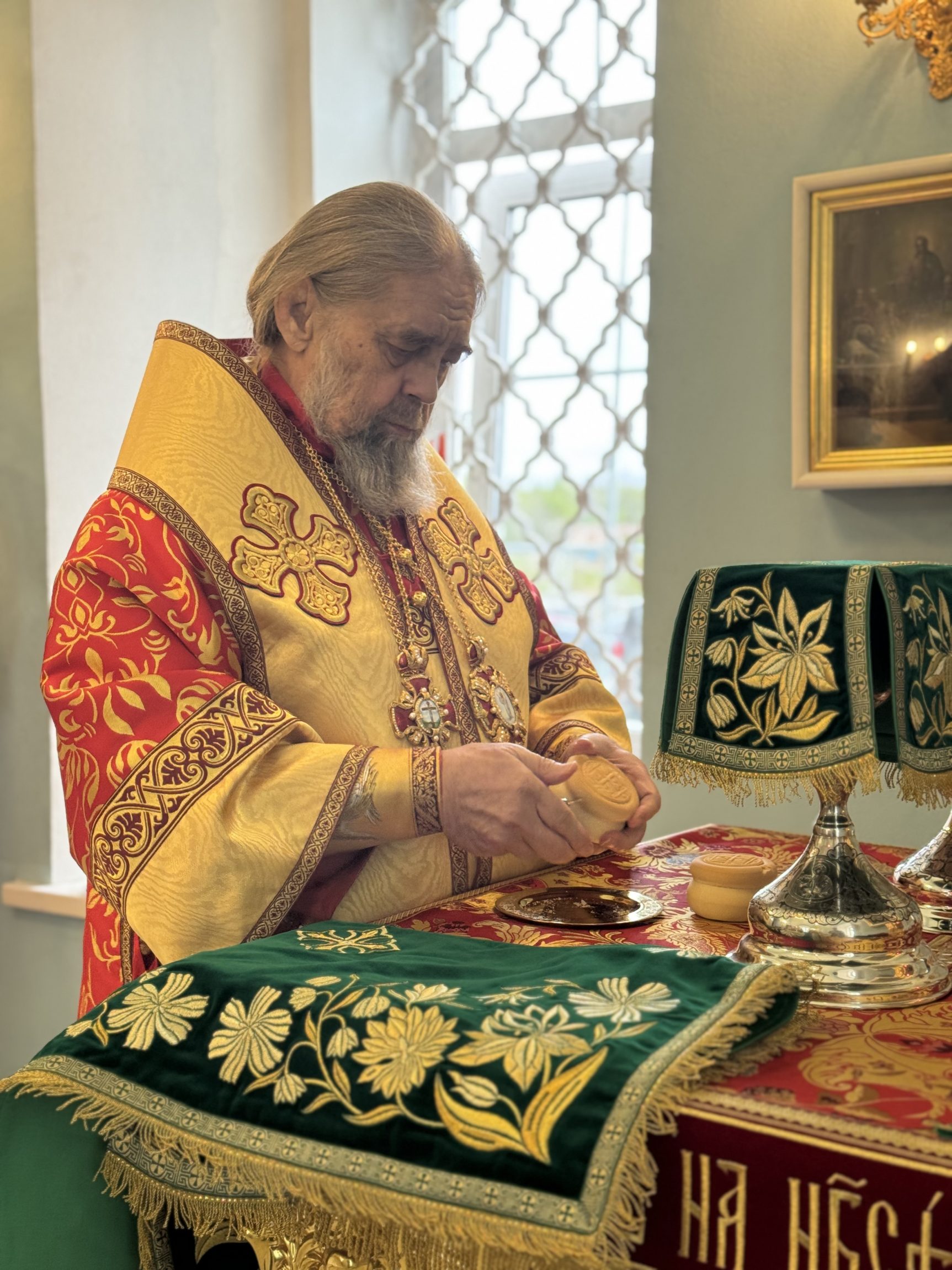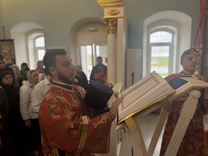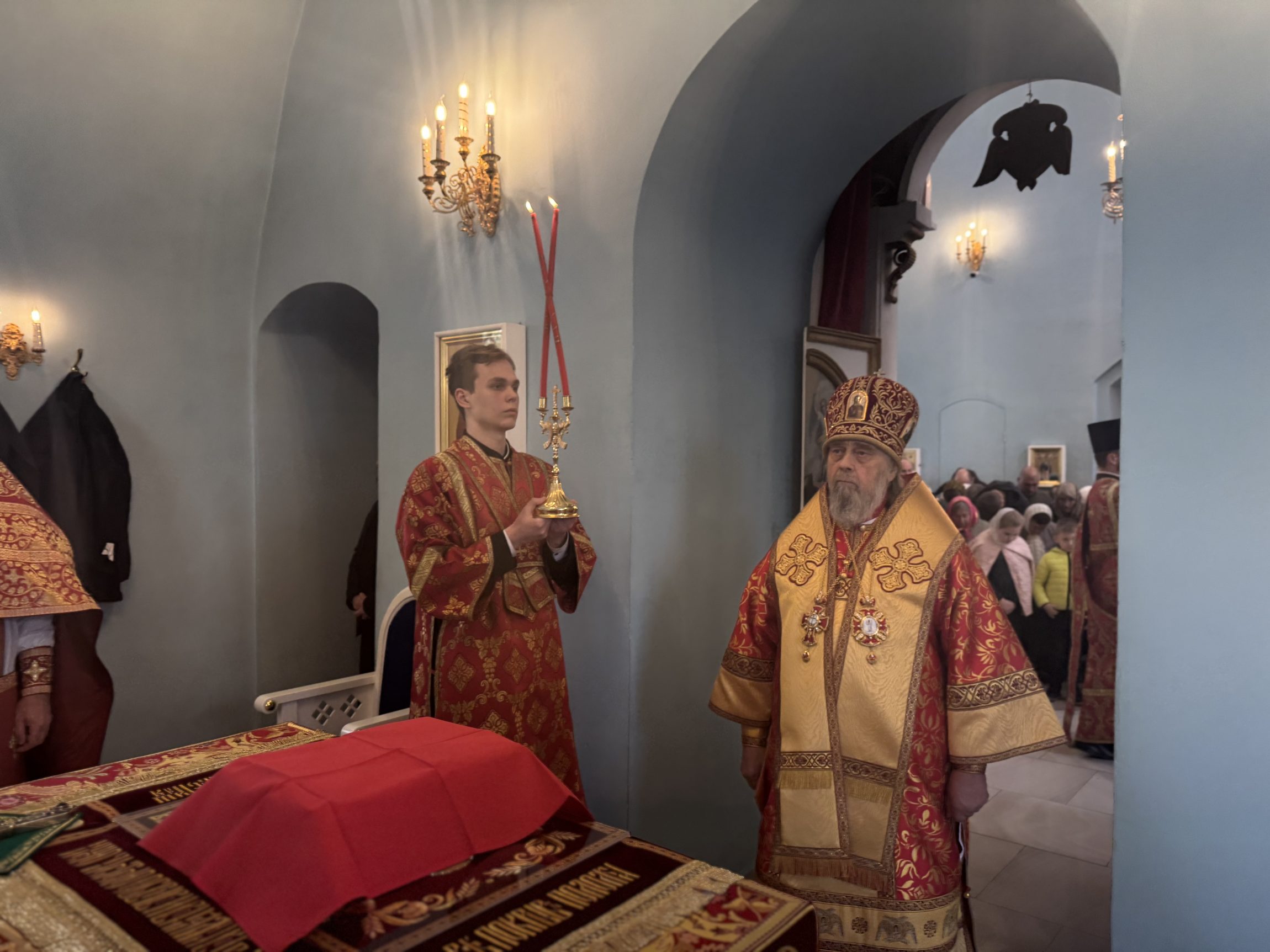 На сугубой ектении вознесены молитвы о благопоспешении христолюбивому Российскому воинству в установлении мира в сию лихую годину, на Святую Русь нашедшую, о мире на Украине, а также о сохранении единства святого Православия.