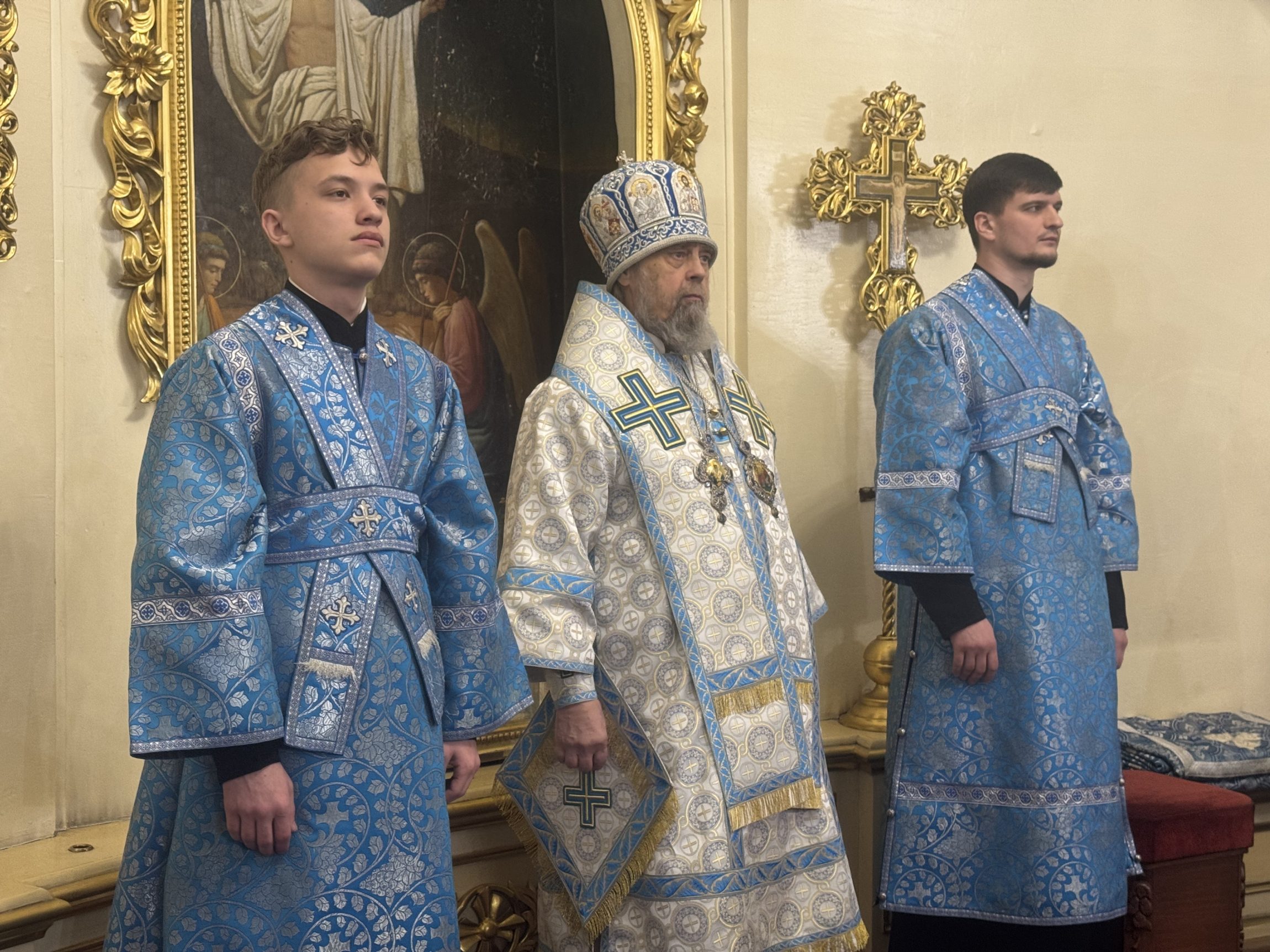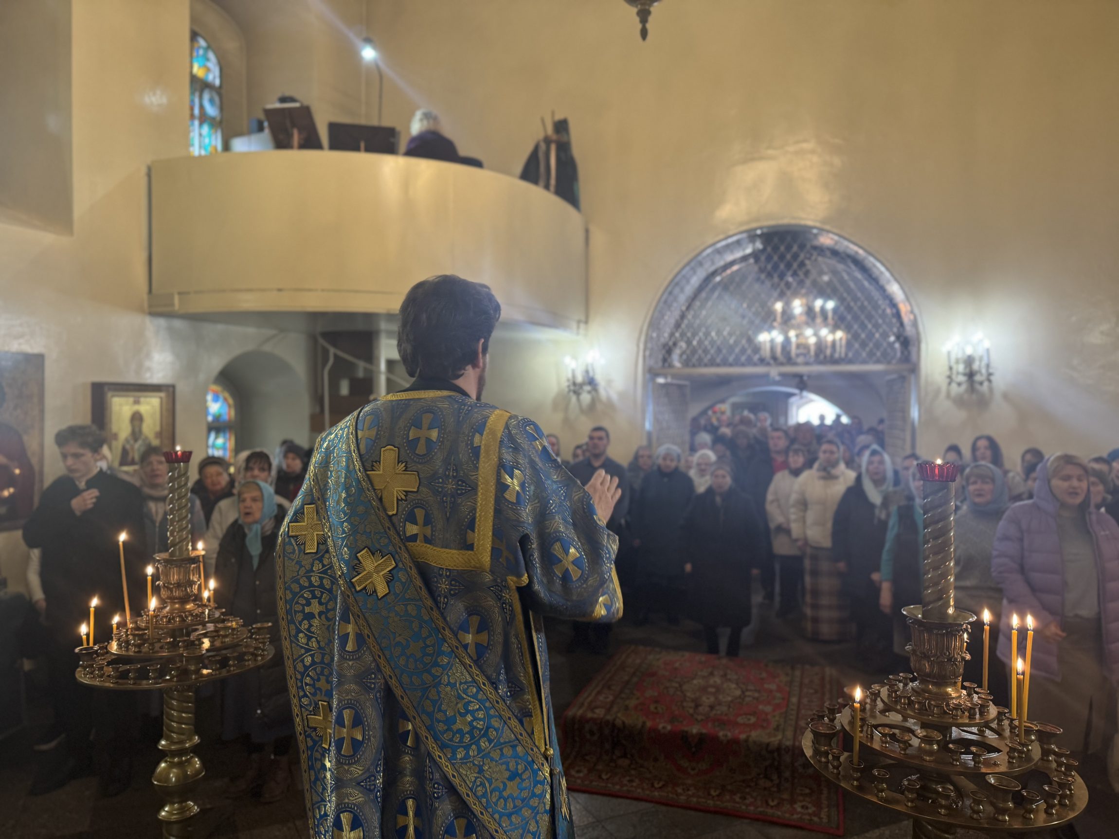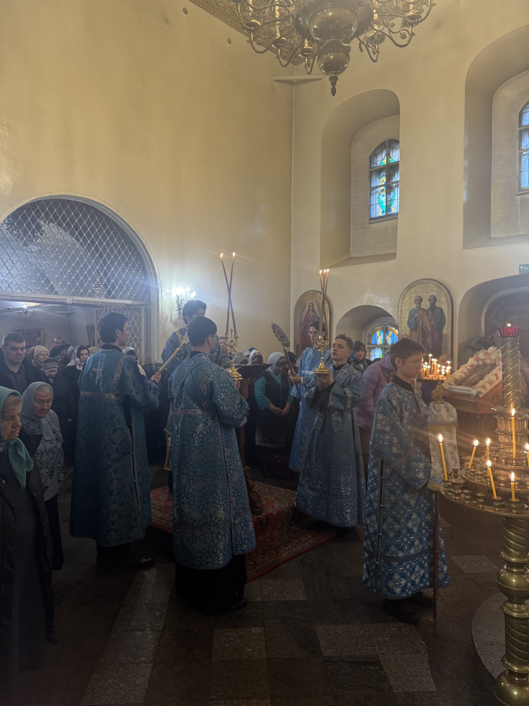 На сугубой ектении вознесены молитвы о благопоспешении христолюбивому Российскому воинству в установлении мира в сию лихую годину, на Святую Русь нашедшую, о мире на Украине, а также о сохранении единства святого Православия.