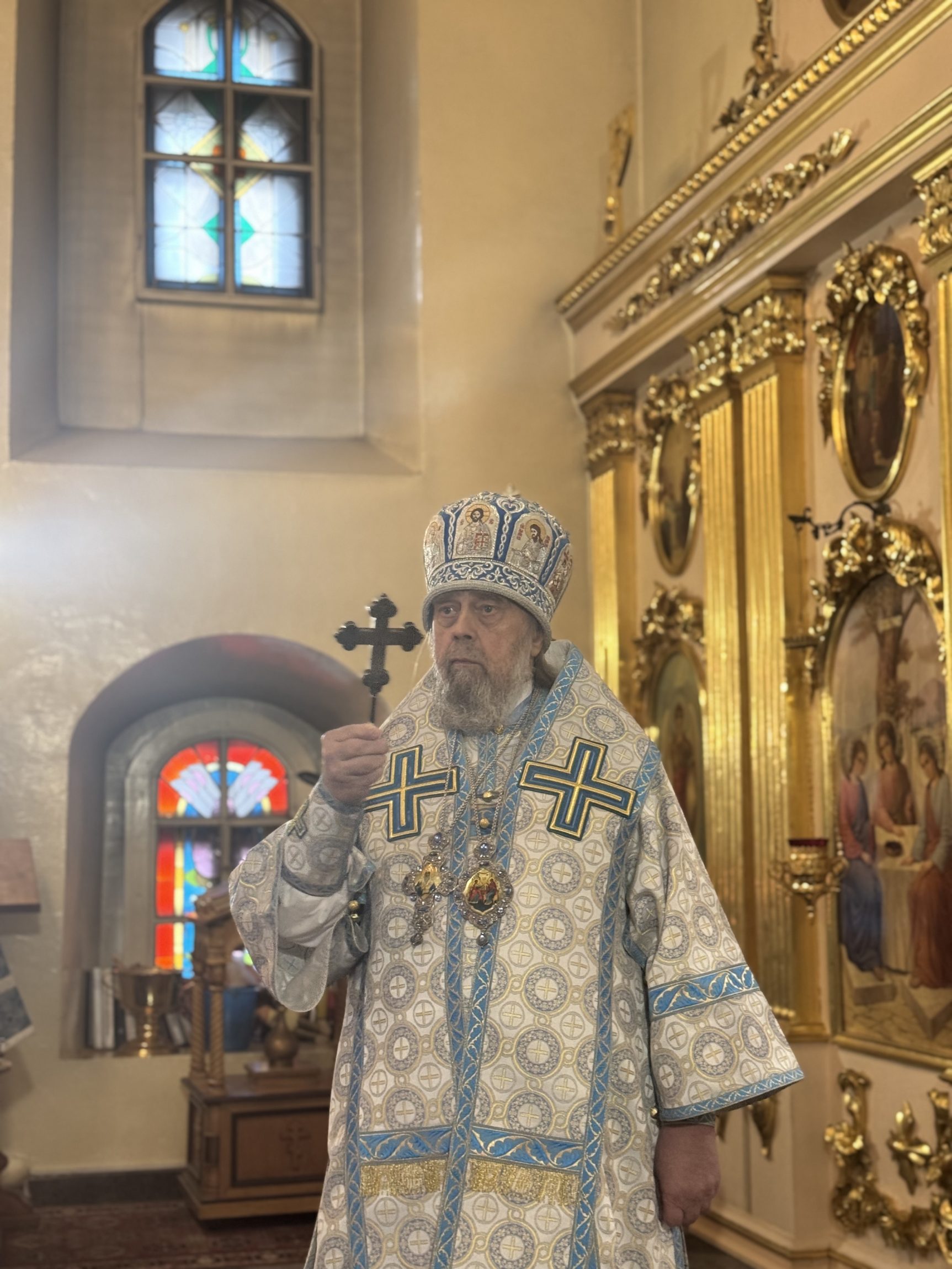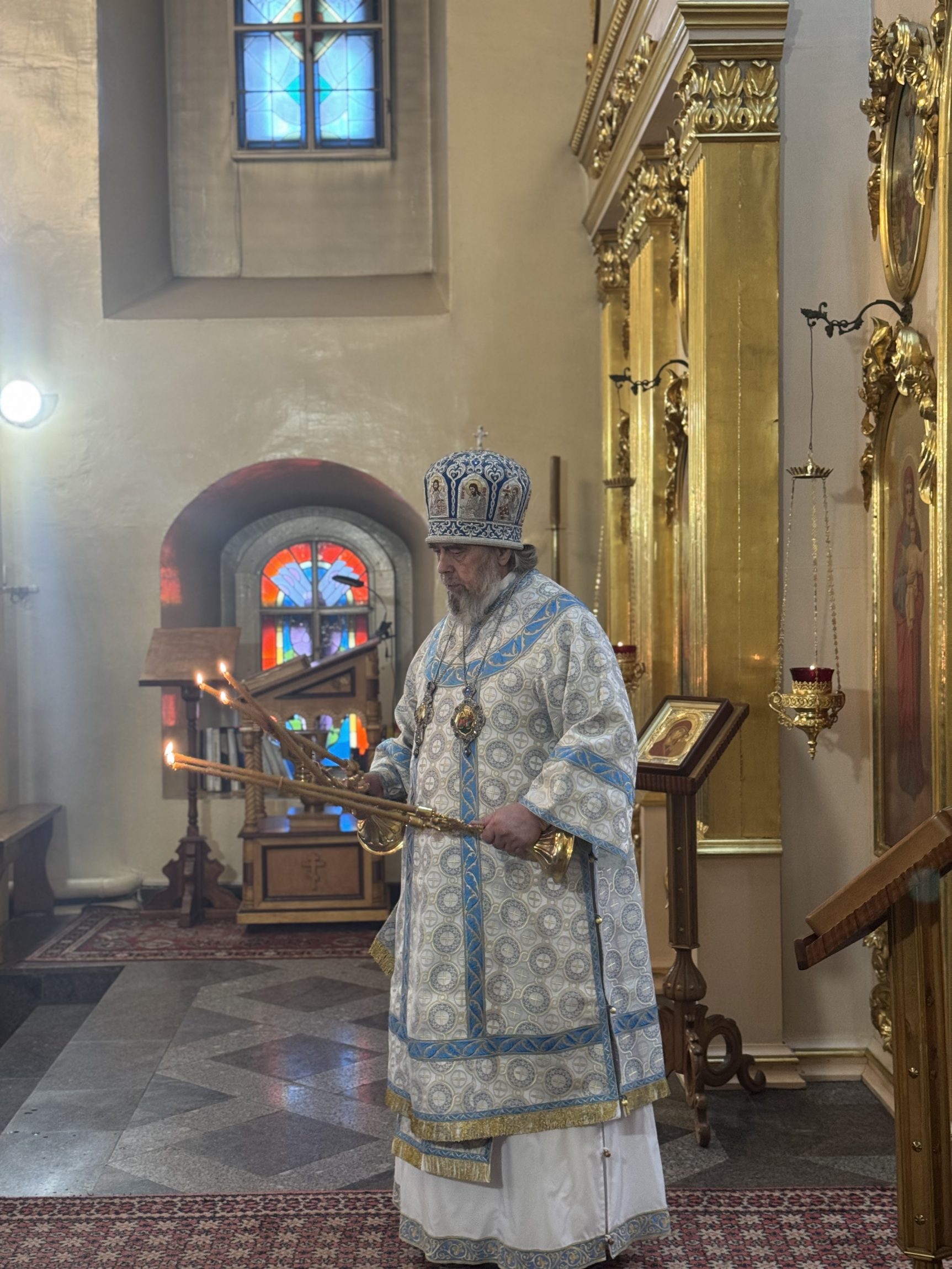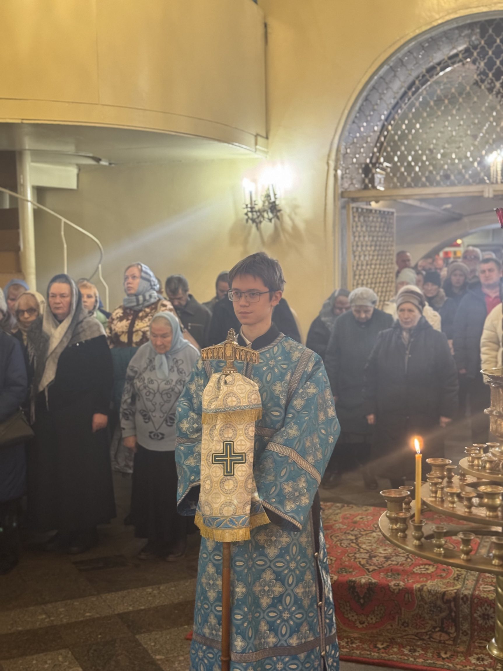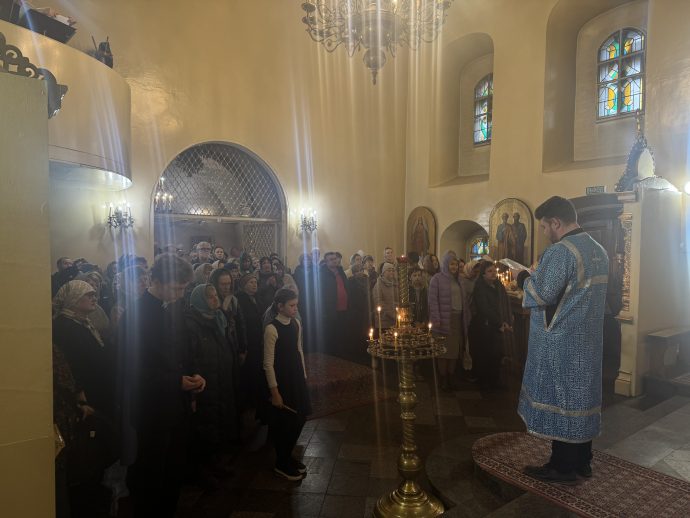 На сугубой ектении вознесены молитвы о благопоспешении христолюбивому Российскому воинству в установлении мира в сию лихую годину, на Святую Русь нашедшую, о мире на Украине, а также о сохранении единства святого Православия.