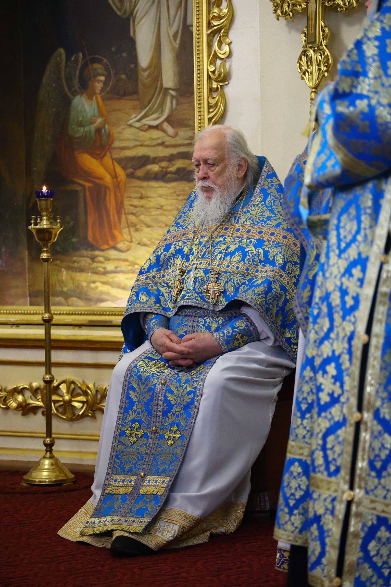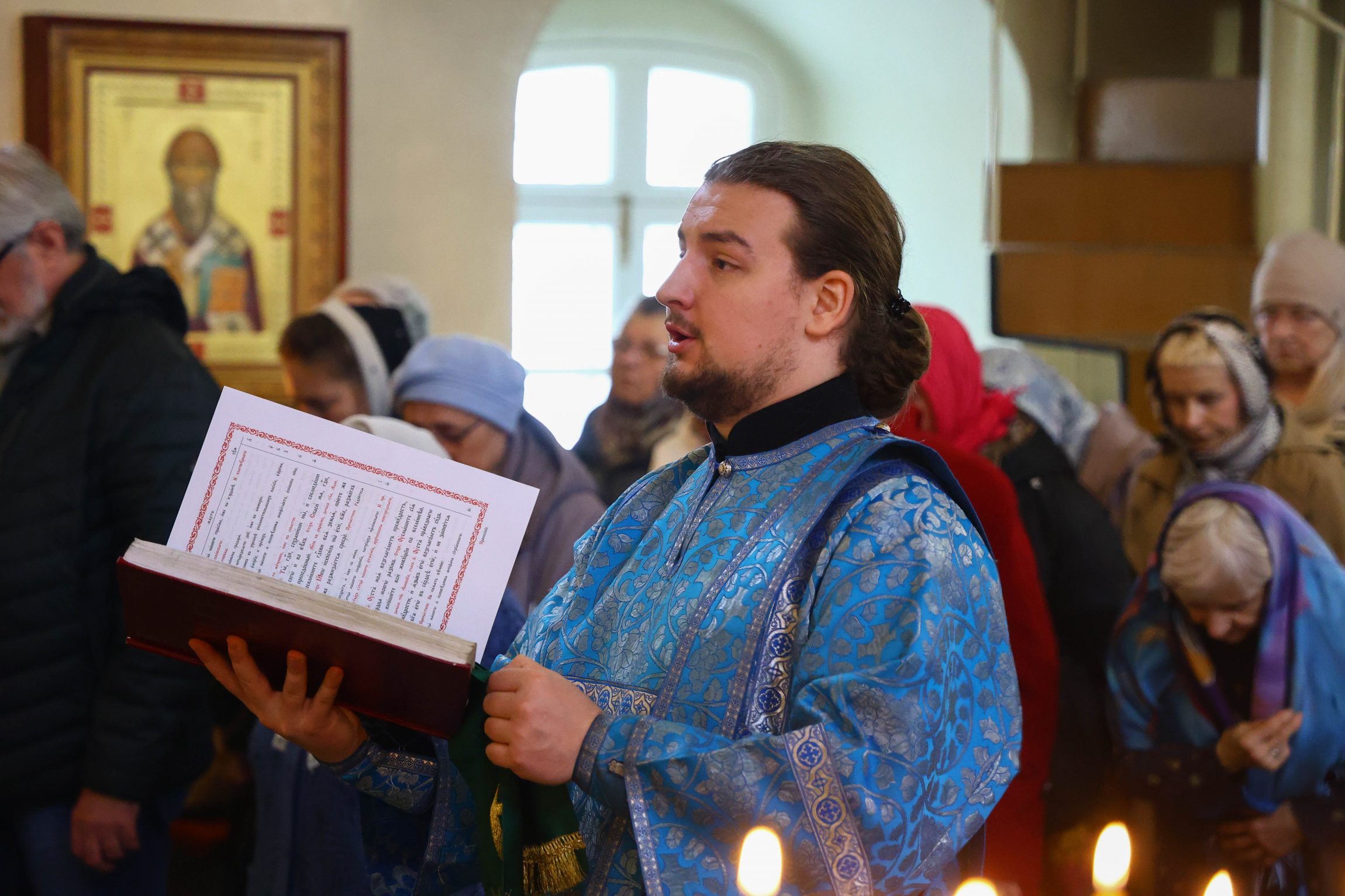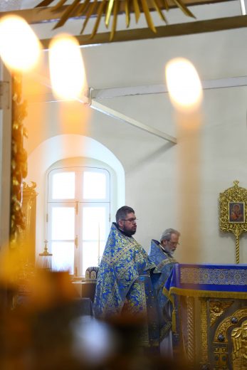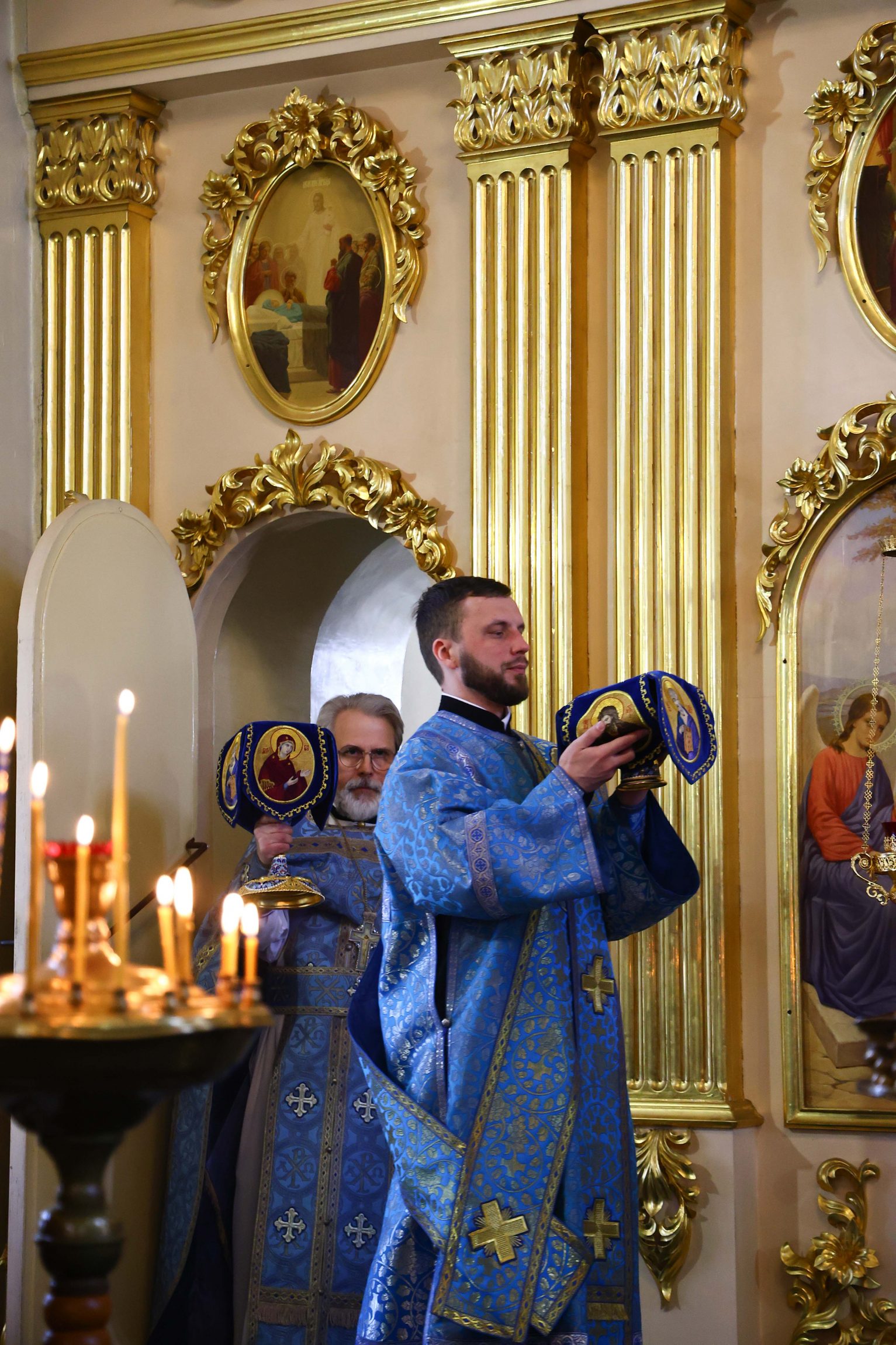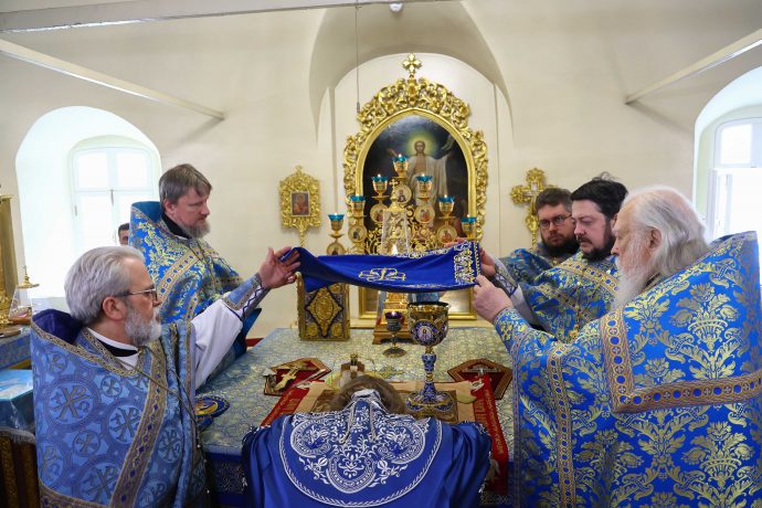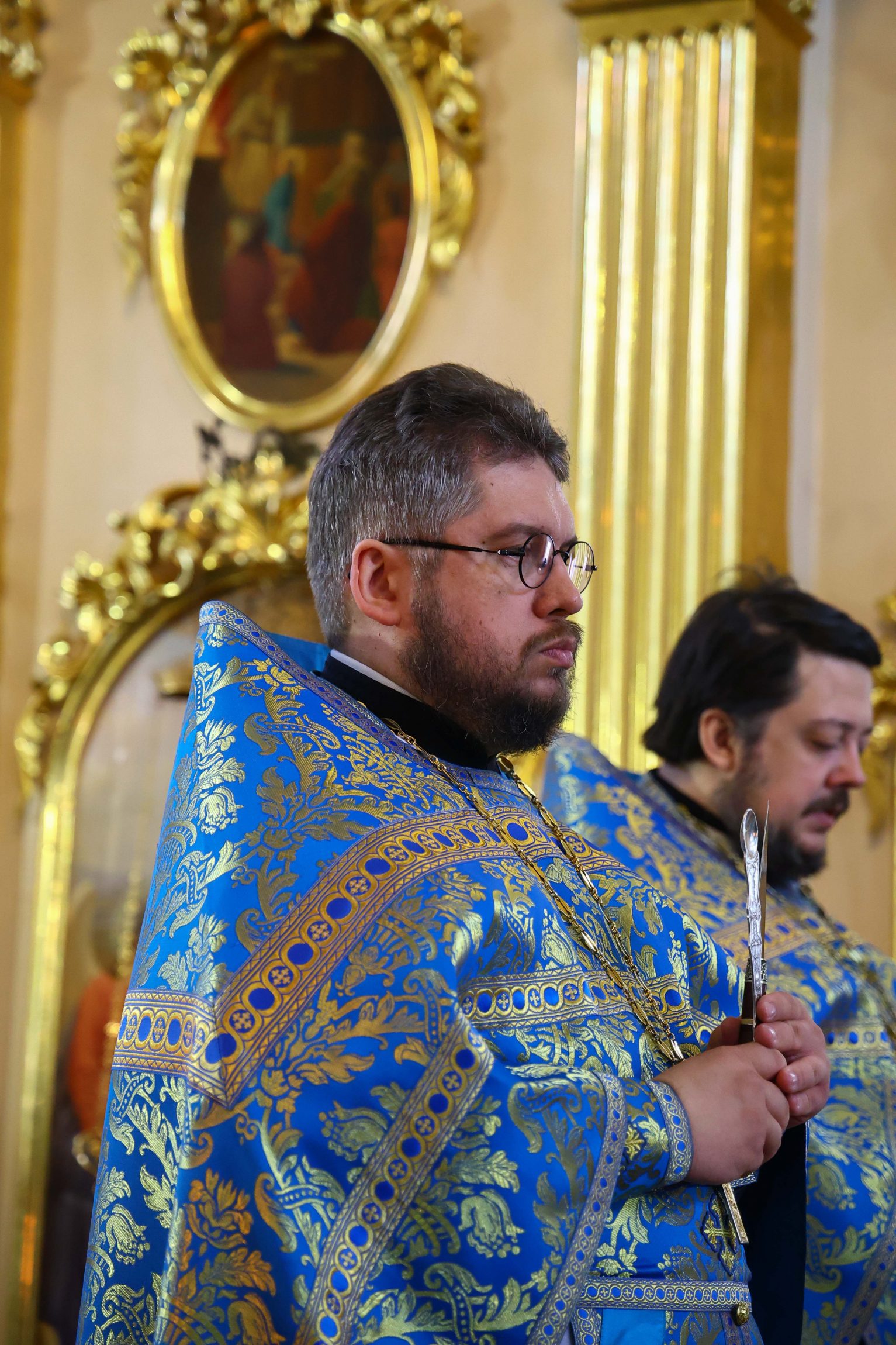 На сугубой ектении вознесены молитвы о благопоспешениихристолюбивому Российскому воинству в установлении мира в сию лихую годину, на Святую Русь нашедшую, о мире на Украине, а также о сохранении единства святого Православия.