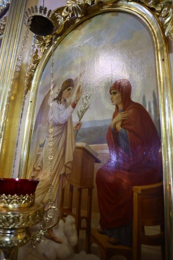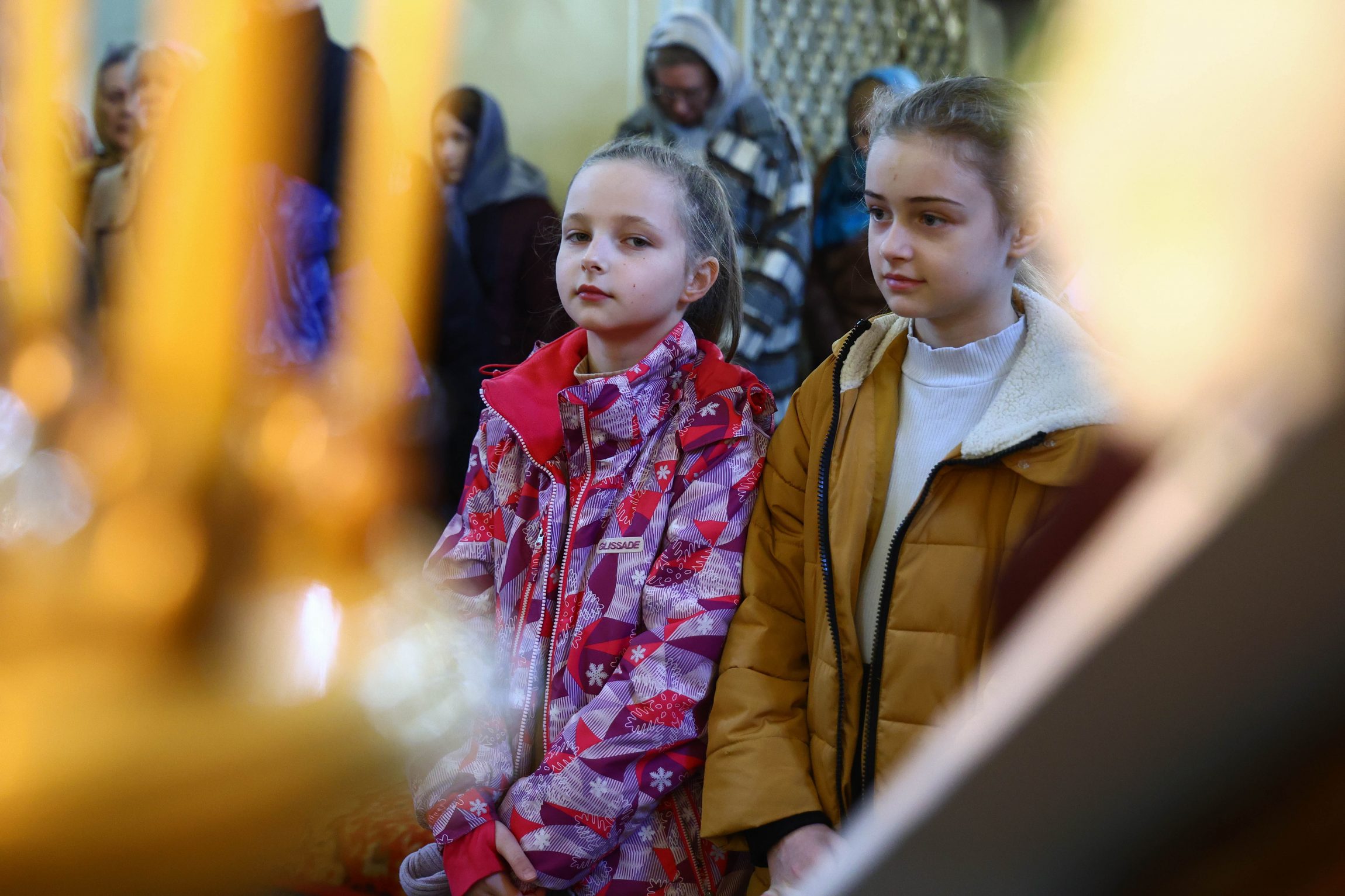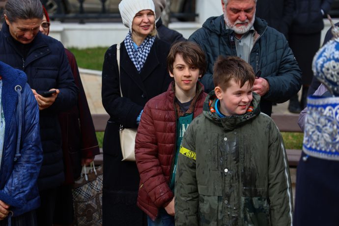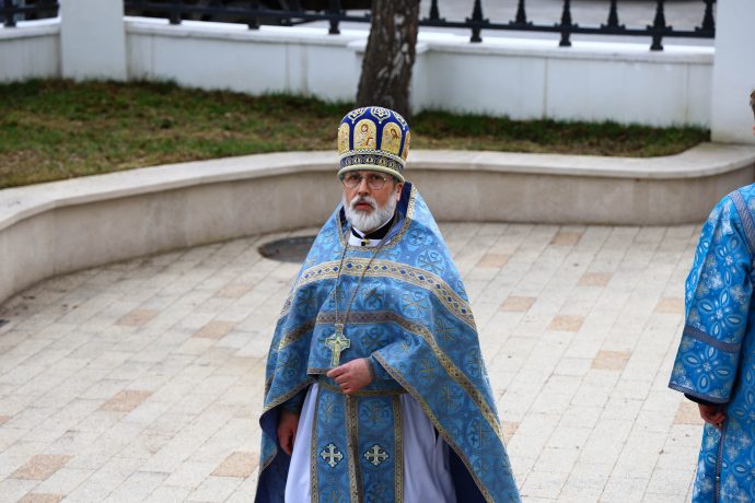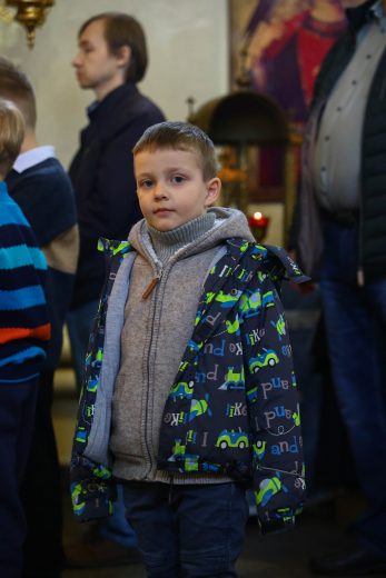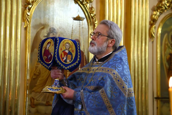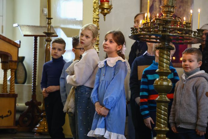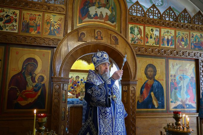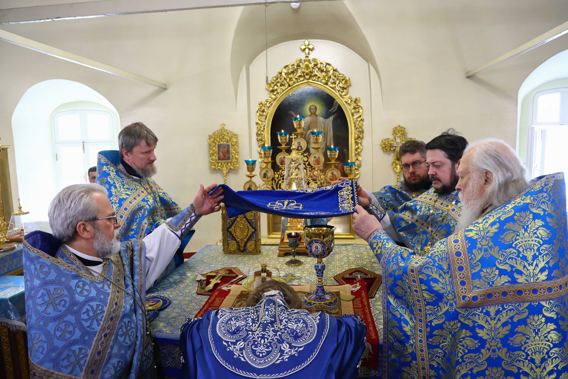 На сугубой ектении вознесены молитвы о благопоспешениихристолюбивому Российскому воинству в установлении мира в сию лихую годину, на Святую Русь нашедшую, о мире на Украине, а также о сохранении единства святого Православия.