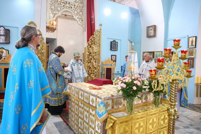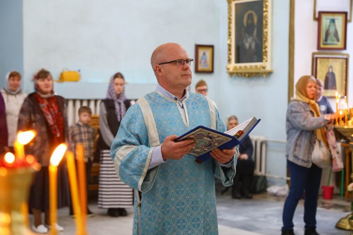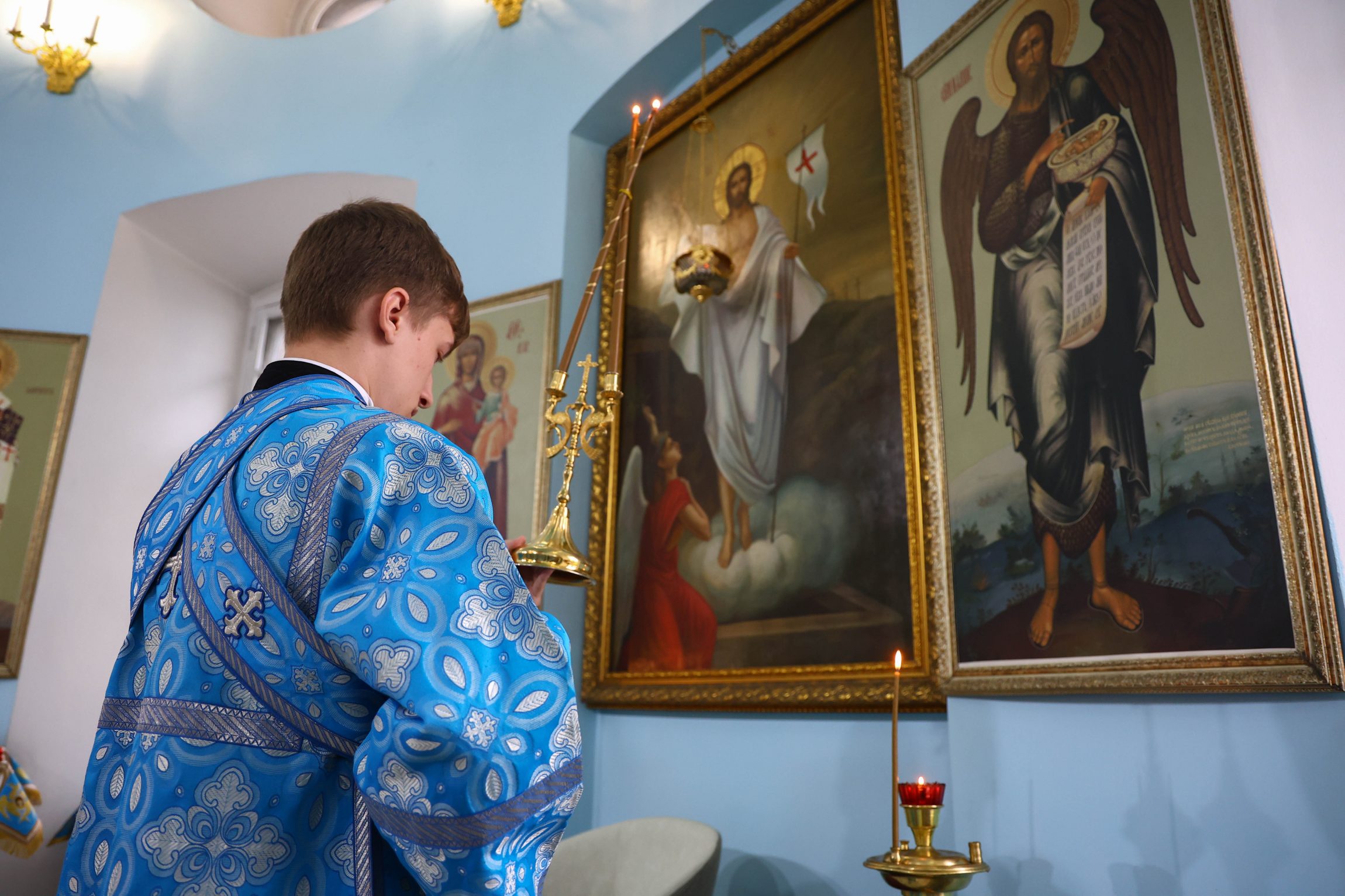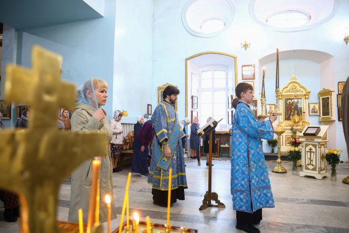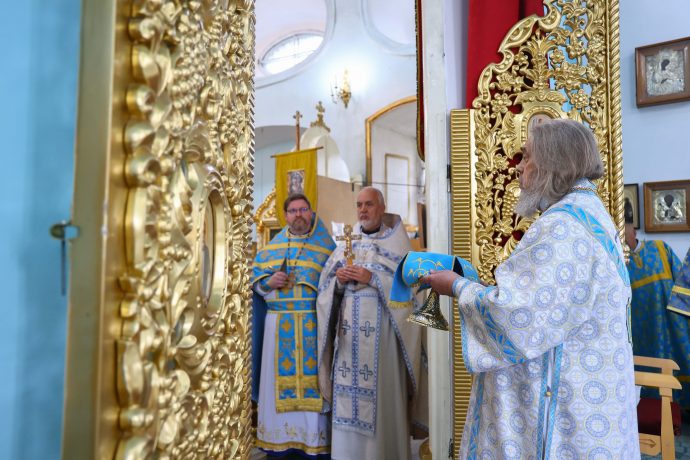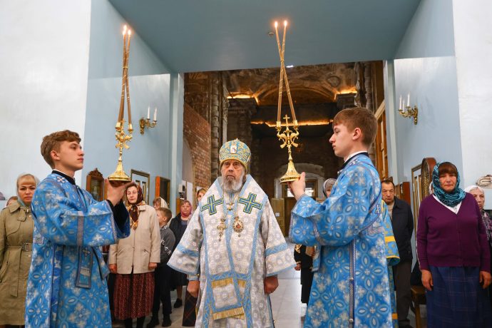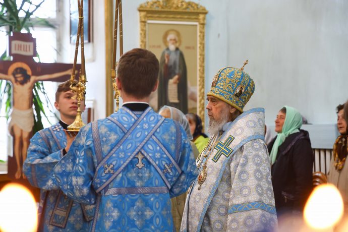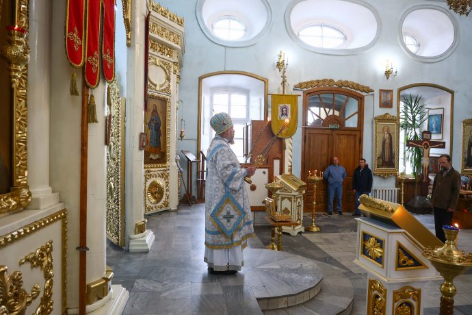 На сугубой ектении вознесены молитвы о благопоспешении христолюбивому Российскому воинству в установлении мира в сию лихую годину, на Святую Русь нашедшую, о мире на Украине, а также о сохранении единства святого Православия.