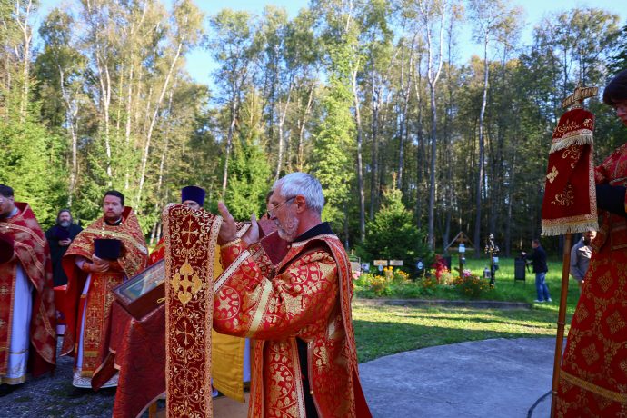 На заупокойной ектении совершено сугубое моление об усопших рабах Божиих, за веру и правду Христову в годину лихолетий жизни свои отдавших.
