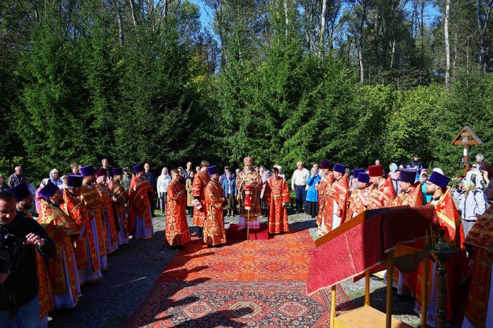 Божественную литургию в часовне новомучеников и исповедников Церкви Русской на Тульской голгофе 20 века в Тесницком лесу совершил митрополит Тульский и Ефремовский Алексий в сослужении духовенства.