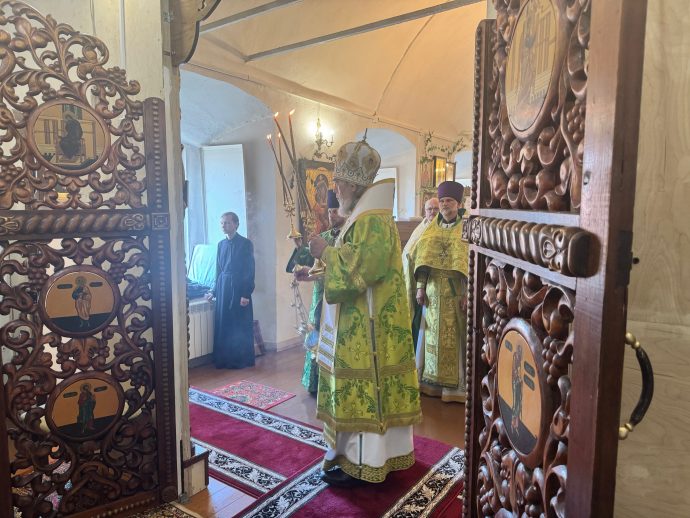 В день престольного праздника митрополит Тульский и Ефремовский Алексий совершил Божественную литургию в восстанавливающемся храме в честь Сошествия Святого Духа на апостолов, именуемого в народе по второму приделу «Георгиевским», что на Хопре, города Тулы в сослужении благочинного Северного городского округа протоиерея Вячеслава Ковалевского, настоятеля храма иерея Александра Суворина и духовенства благочиния.
