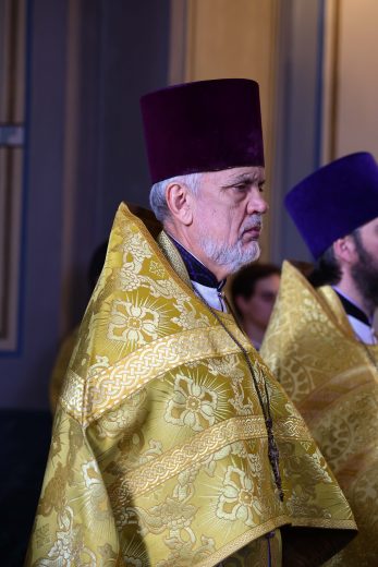 По окончании Литургии протоиерей Павел Савельев, секретарь Тульской епархии, огласил поступившие в адрес митрополита Алексия поздравление Святейшего Патриарха Московского и всея Руси Кирилла.