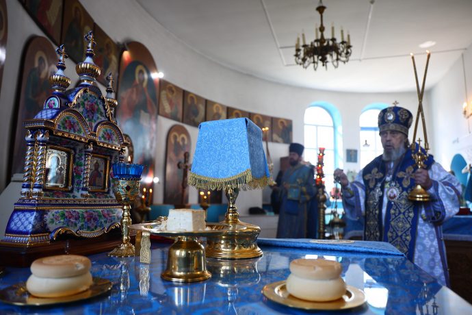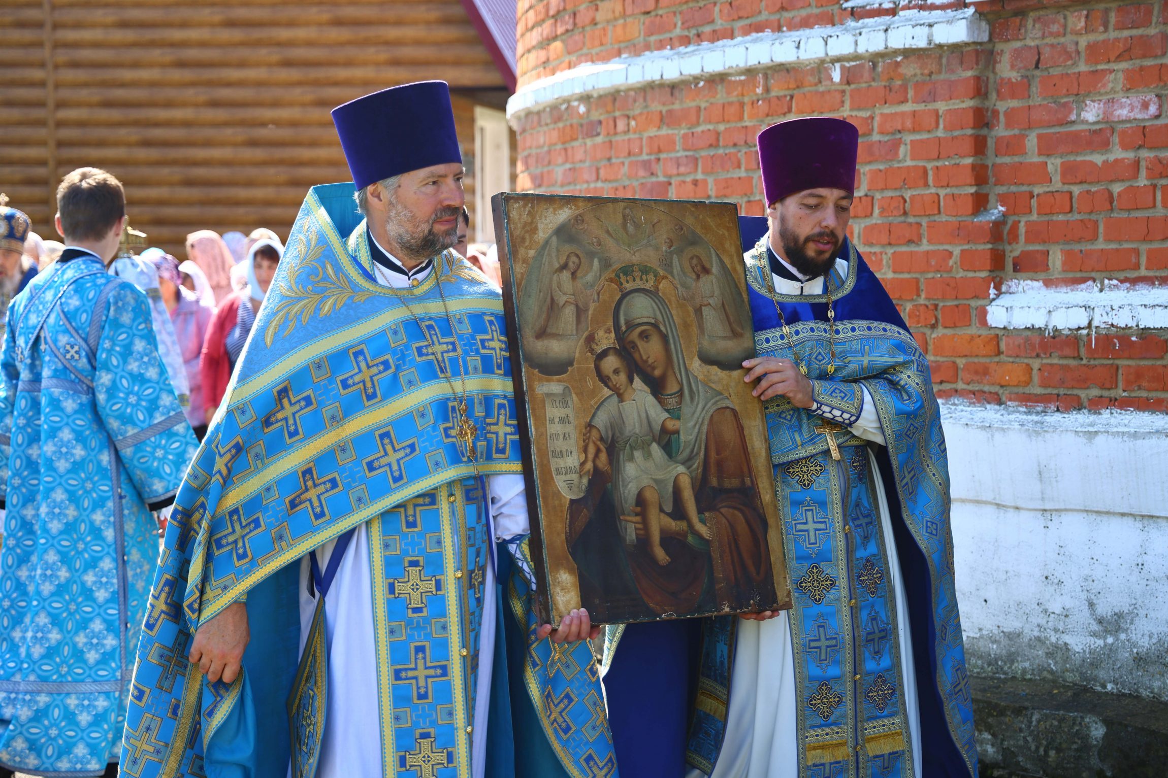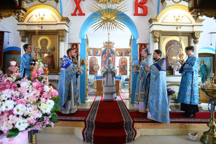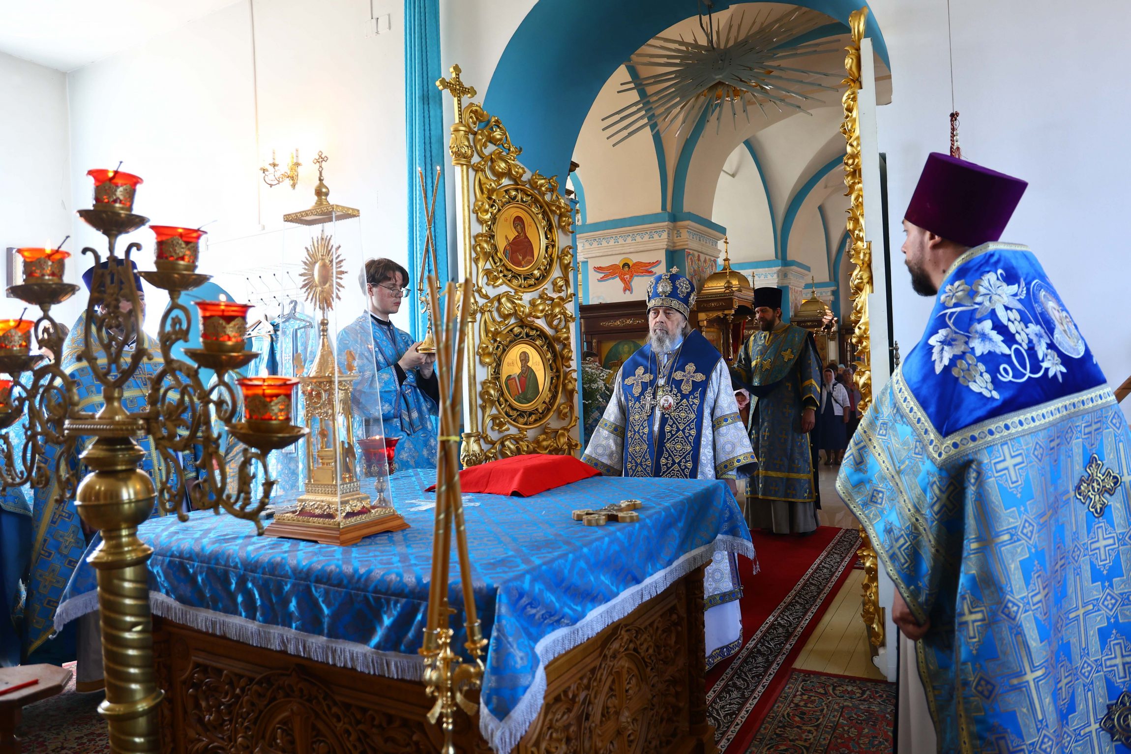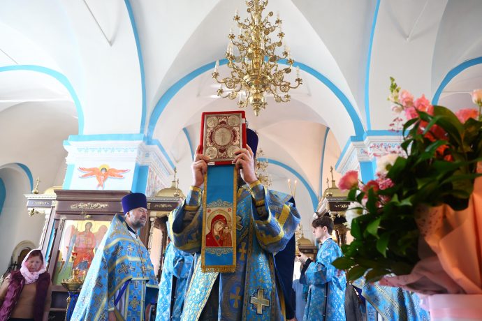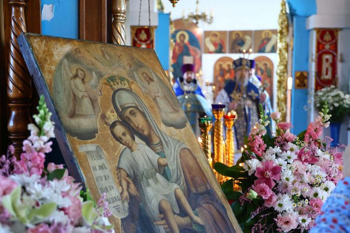 По окончании богослужения совершено славление перед чтимым образом Пресвятой Богородицы, привезенным с Афонской горы еще в дореволюционное время.
