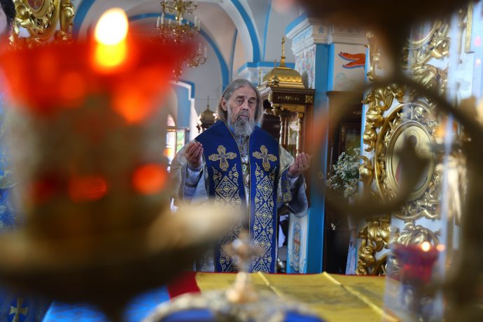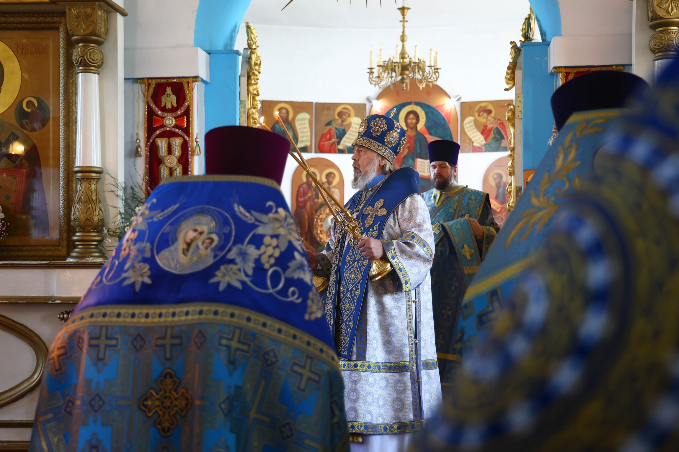 На сугубой ектении вознесены молитвы о благопоспешении христолюбивому Российскому воинству в установлении мира в сию лихую годину, на Святую Русь нашедшую, о мире на Украине, а также о сохранении единства святого Православия.
