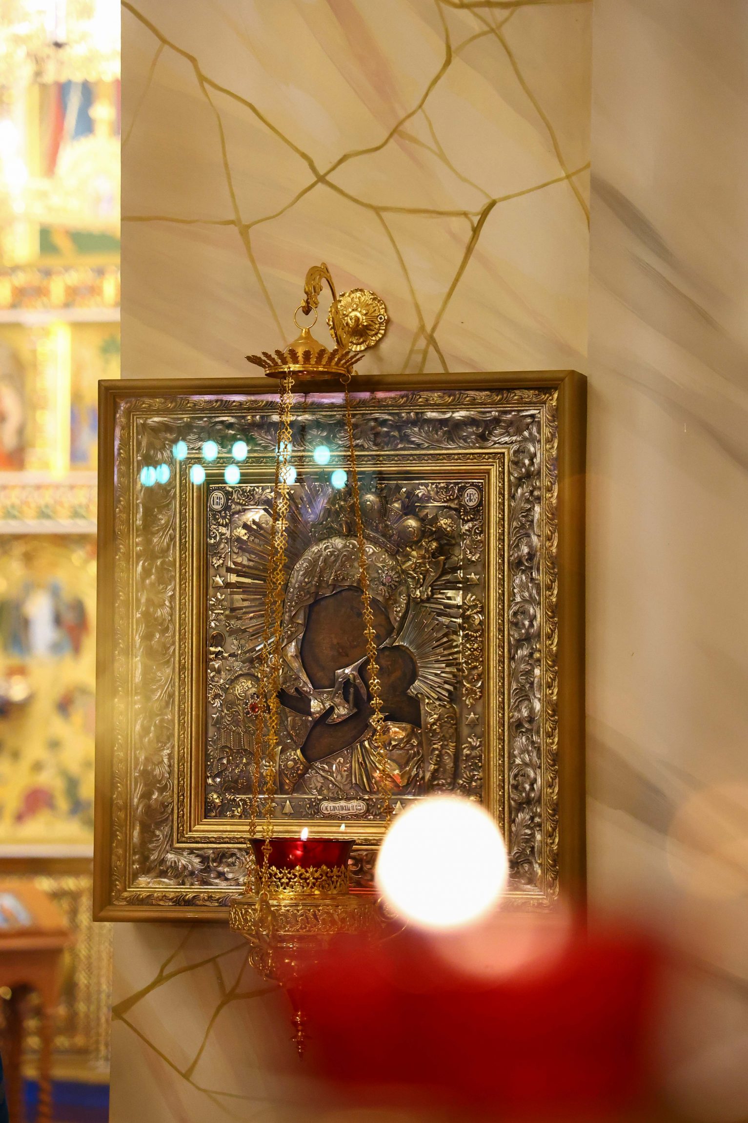 По окончании богослужения совершено славление перед чтимым Корсунским образом Пресвятой Владычицы нашей Богородицы и иконой преподобного Севастиана с окроплением молящихся святой водой.