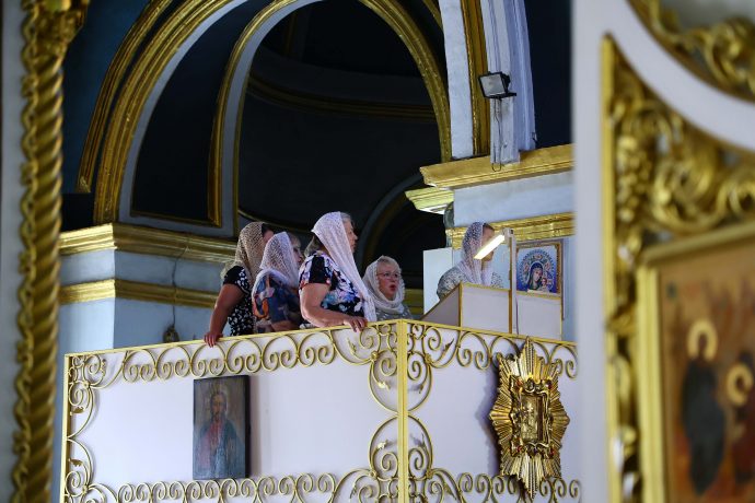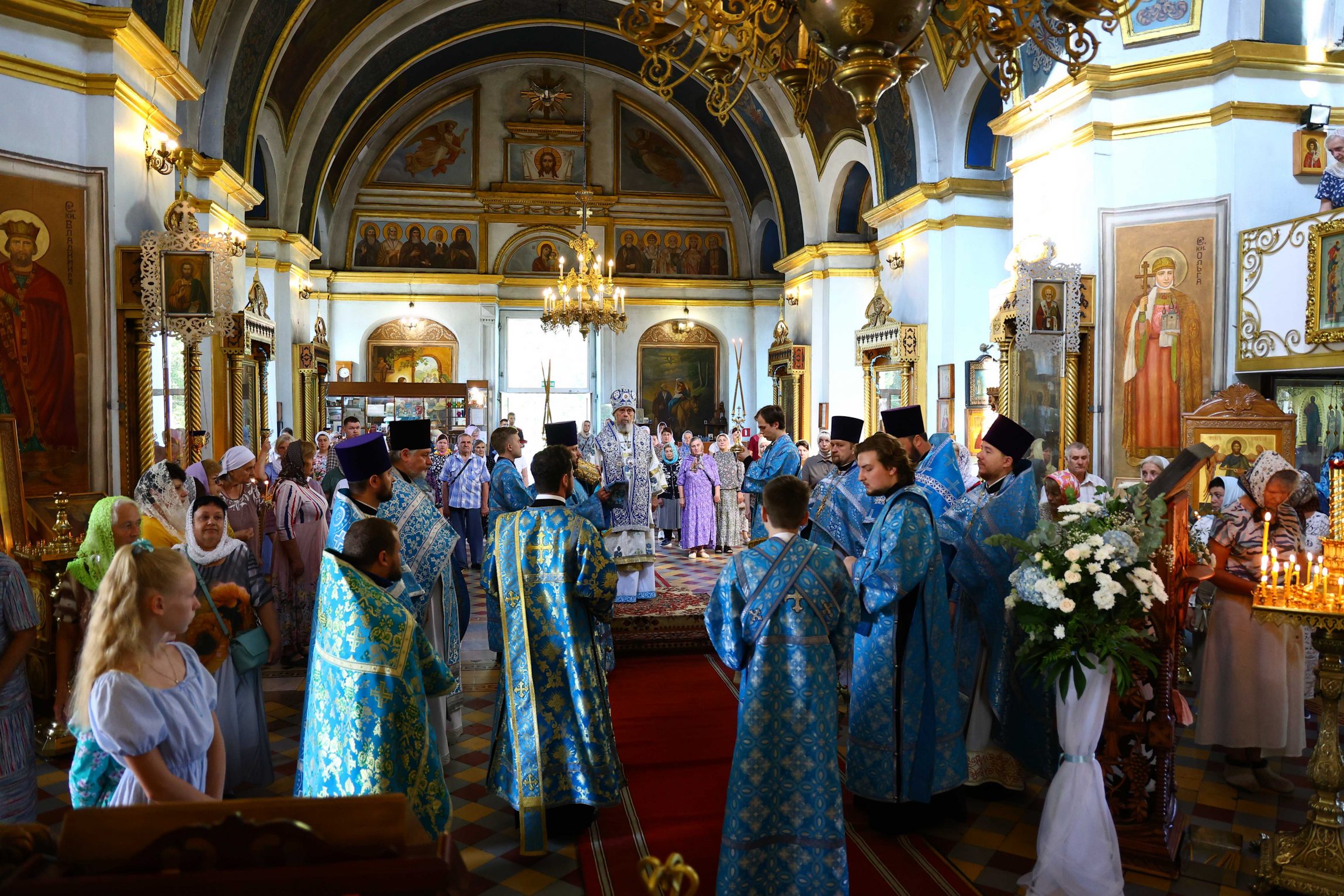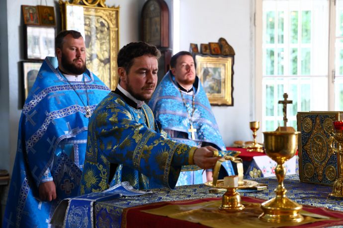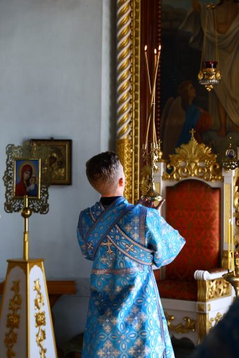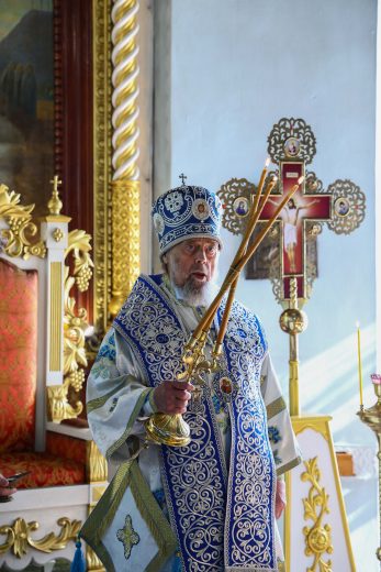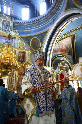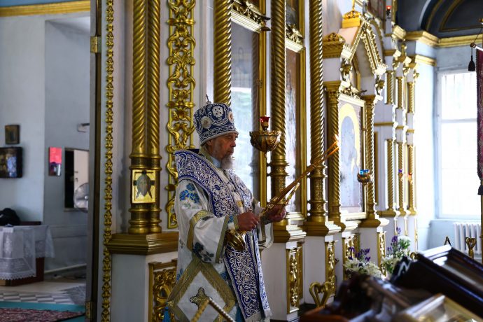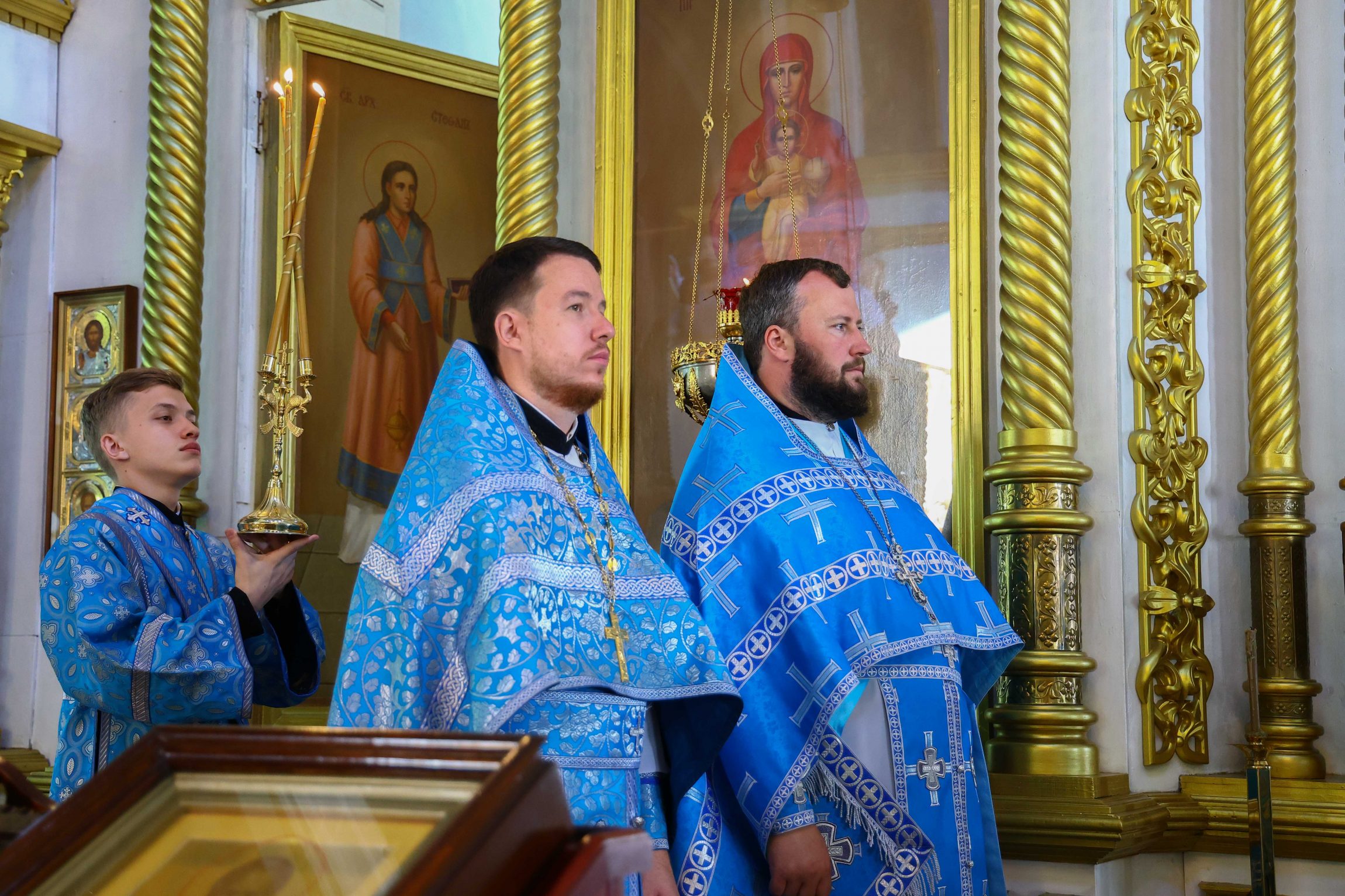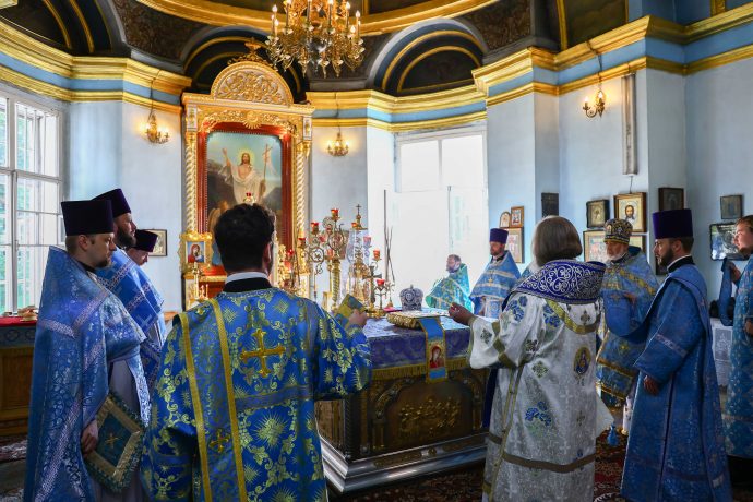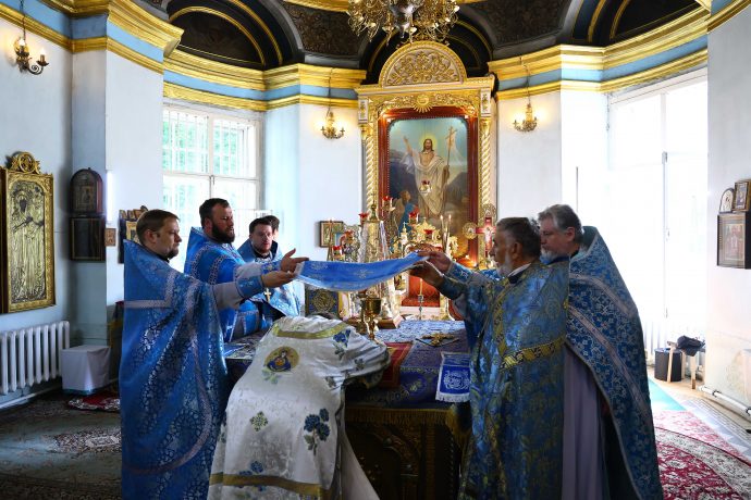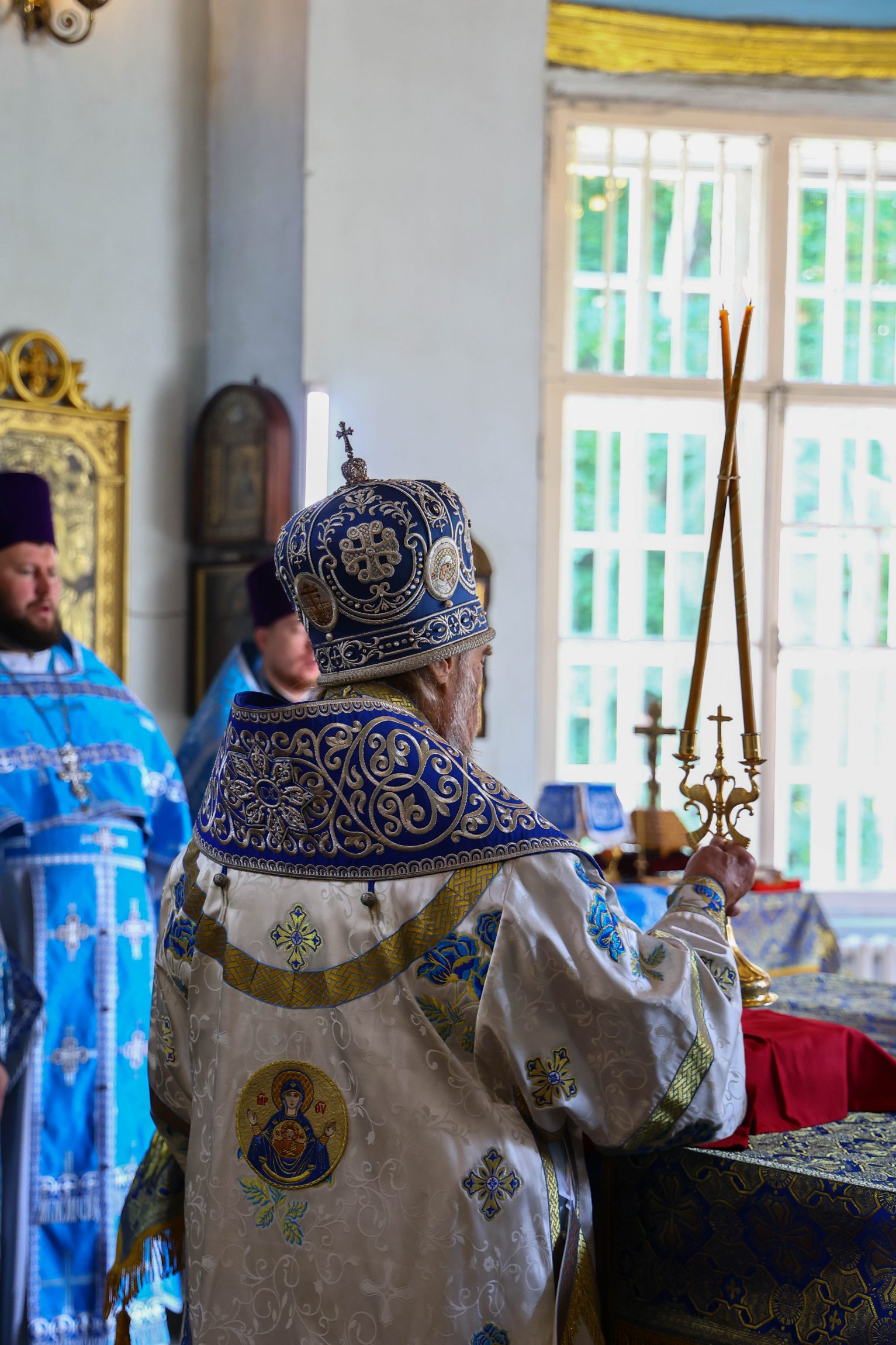 На сугубой ектении вознесены молитвы о благопоспешении христолюбивому Российскому воинству в установлении мира в сию лихую годину, на Святую Русь нашедшую, о мире на Украине, а также о сохранении единства святого Православия.