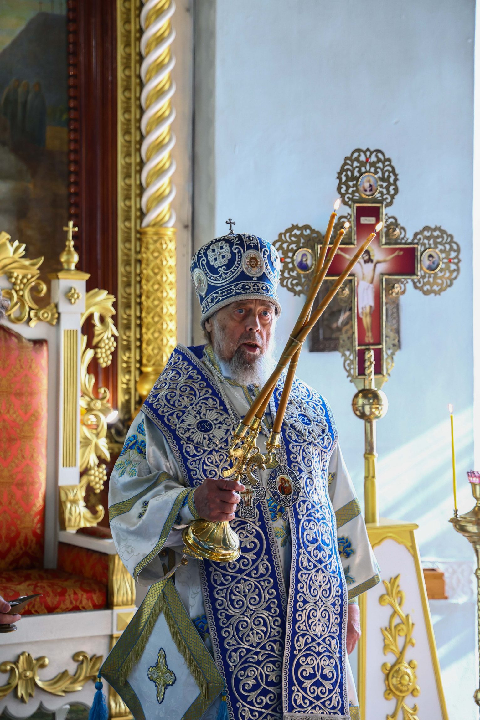 Затем владыка Алексий обратился к молящимся: «Словом мира и любви о Христе приветствую всех вас, всечестные отцы и возлюбленные о Господе братья и сестры, в благословенный день молитвенного чествования Пресвятой Госпожи Владычицы нашей Богородицы и Приснодевы Марии, благоволившей благодатным образом действовать в Святой Соборной Апостольской Церкви, соработничая благой воле христиан через Свой образ, который вошел в историю под наименованием «Троеручица». Копия с этой иконы с любовью хранится под сводами этого возрожденного храма. Мы имеем счастье и радость приступать к святыне, взирать на нее очами, лобызать не только устами, но и духом ума своего, понимая, какие внутренние смыслы открываются нам.